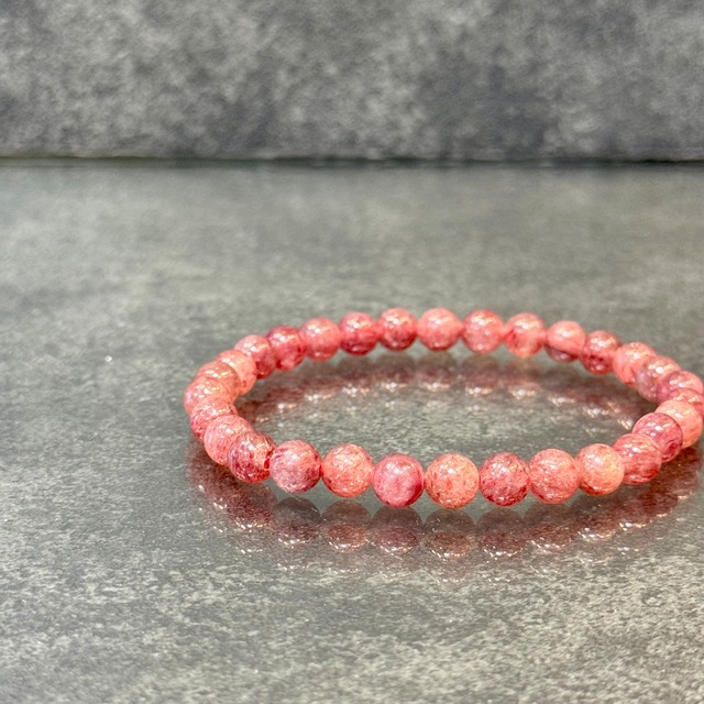 ご購入前に本文の注意書きを必ずお読みください やわらかなピンクの中に、オレンジ色と白のセリサイトが溶け込むように広がる特別なローズクォーツ。 光を当てるとスターが浮かび上がり、優しく幻想的な輝きを放ちます。 ローズクォーツは「愛」「癒し」「自己受容」を象徴する石。 そこにセリサイトの持つ“前向きな活力”が重なり、 ただ優しいだけでなく、愛を現実に育てていく力をサポートするといわれています。 スターの光は “本来の魅力を引き出すサイン”ともされ、 内側にある輝きをそっと表に導いてくれる存在です。 ▶代表的な意味 ・愛情運、魅力アップ ・自己肯定感を高める ・癒しと安心感 ・前向きな変化 ・人間関係の調和 やさしさの中に、しっかりとした強さを。 自分らしく愛されたい方へおすすめの特別な一本です。 オレンジセリサイトインスターローズクォーツ サイズ:10mm 内径:17cm ------------------------------- 天然石の製品について以下の点にご注意ください 【個々の違い】 天然石は一つひとつ表情が異なるため、同じデザインでもお色味や模様が画像と異なる場合がございます。 一点もの表記以外の製品は可能な限り近いものをお届けするよう努めておりますが、予めご了承ください。 【サイズ変更】 サイズ変更をご希望の場合は備考欄にご希望の内径をご記載ください。 特にご指定がない場合は無料で調整させて頂きますが、備考欄から追加する石やデザインのご指定は承り兼ねます。 ※サイズ変更により本来のデザインと変わる場合がございます。(大幅な変更はございません) ※天然石の大きさによりジャストサイズへのご変更は難しくなっております。出来る限り近いサイズに調整させて頂きますのでご了承下さい。 特定の石を追加したい場合は有料となますので、公式ラインよりお問い合わせください。 •【掲載画像】 掲載している画像は弊社スタッフが撮影したものです。 出来る限り実物と相違がない様撮影しておりますが、デバイスにより見え方が違う場合もございますのでご理解をお願い申し上げます。 【天然石の特性】 天然石のため細かな欠けや凹み、歪み、クラックなどがある場合があります。 【サイズの誤差】 サイズは目安であり細かな誤差が生じる場合があります。 これらの点をご理解の上、ご購入いただきますようお願いいたします -------------------------------