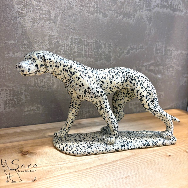 ダルメシアンジャスパーは、斑点模様が特徴のユニークな石で、「遊び心」や「バランス」を象徴するとされています。**ダルメシアン(犬)**とのつながりもイメージされることがあり、その特徴的な意味やエネルギーと相まって、以下のような効果があると考えられています。 ダルメシアンジャスパーの主な効果 1. ポジティブなエネルギーの活性化 •心に「遊び心」を取り戻し、子供のような純粋な喜びや楽しさを思い出させてくれる。 •ネガティブな感情やストレスを取り除き、明るい気持ちに導く。 2. 心身のバランスを整える •持ち主のエネルギーを安定させ、心と体のバランスをとる。 •感情の浮き沈みを和らげ、冷静な判断力を保つサポートをする。 3. 人間関係の調和 •柔軟な思考を促し、他人との関係を円滑にする手助けをする。 •信頼や友情を深めるエネルギーを持つとされ、人間関係の改善に役立つ。 4. 保護と守護 •ネガティブなエネルギーから守るお守りとしても用いられる。 •心の安定を保つことで、外部からのストレスや邪念に影響されにくくなる。 5. 勇気と行動力をサポート •ダルメシアンのエネルギーがもたらす「忠誠心」や「保護」の力と結びつき、自分の目標に向かって一歩を踏み出すサポートをしてくれる。 •迷いや不安を和らげ、自信を持って行動できるようになる。 ダルメシアン(犬)の象徴との組み合わせ ダルメシアンジャスパーの名前に関連する「ダルメシアン(犬)」は、以下のようなスピリチュアルな意味を象徴しています: •忠誠心と友情: 持ち主に対する忠誠心や友情を高め、信頼関係を築く手助けをする。 •守護と安心感: ダルメシアンが家族を守る犬として知られるように、この石も持ち主を外的な影響から守るエネルギーを持つ。 •遊び心と楽観性: 犬の陽気な性格にちなんで、楽観的で遊び心のあるエネルギーをもたらす。 ダルメシアンジャスパーのおすすめの使い方 1. アクセサリーとして身につける •ブレスレットやペンダントとして身につけることで、常に石のエネルギーを受け取ることができます。 •日常的なストレスを軽減し、ポジティブな気持ちをサポートします。 2. お守りとして持つ •ネガティブなエネルギーやストレスから守るお守りとして、ポケットやバッグに入れて持ち歩くのもおすすめ。 3. 人間関係の改善に使用 •家庭や職場での調和を促すため、共有スペースに置くと効果的です。 4. 瞑想時に使用する •石を手に持って瞑想することで、心を落ち着け、ポジティブなビジョンを描く助けになります。 こんな人におすすめ •最近ストレスやネガティブな感情に悩んでいる人。 •人間関係を良好にしたい、調和を求めている人。 •楽しい気持ちや遊び心を取り戻したい人。 •忠誠心や安心感を大切にしたい人。 ダルメシアンジャスパーは、見た目の可愛らしさだけでなく、エネルギー的にも明るく前向きなサポートをしてくれる素晴らしい石です! サイズ:高さ 12cm 横幅 22mm 奥行き 6cm ------------------------------- 【掲載画像】 掲載している画像は弊社スタッフが撮影したものです。 出来る限り実物と相違がない様撮影しておりますが、デバイスにより見え方が違う場合もございますのでご理解をお願い申し上げます。 【天然石の特性】 天然石のため細かな欠けや凹み、歪み、クラックなどがある場合があります。 【サイズの誤差】 サイズは目安であり細かな誤差が生じる場合があります。 これらの点をご理解の上、ご購入いただきますようお願いいたします -------------------------------