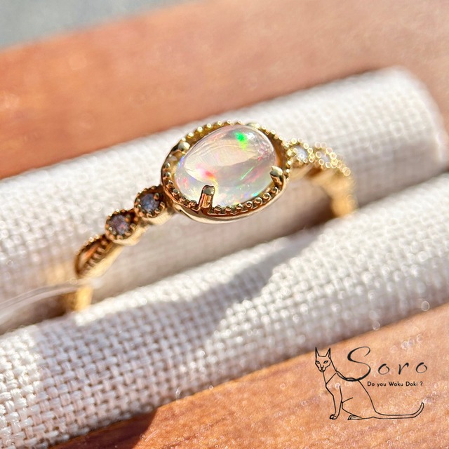 【K18リング】ウォーターオパール×ダイヤモンド 【水の精霊】メキシコ産