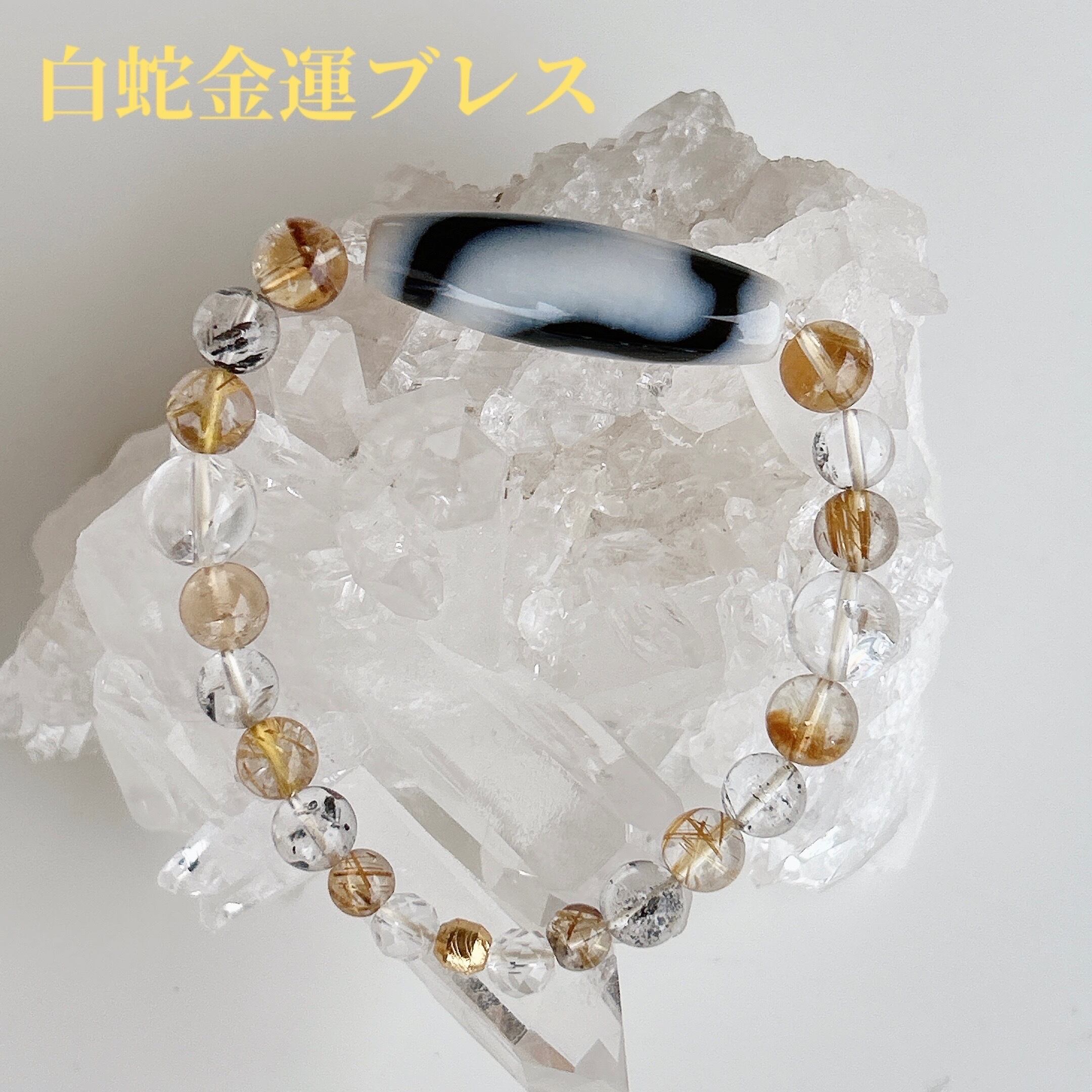 【覚醒の導きブレス】白蛇天珠×ファントムシトリン×ルチルクォーツ×エレスチャル×ギベオン隕石×アイリスクォーツ