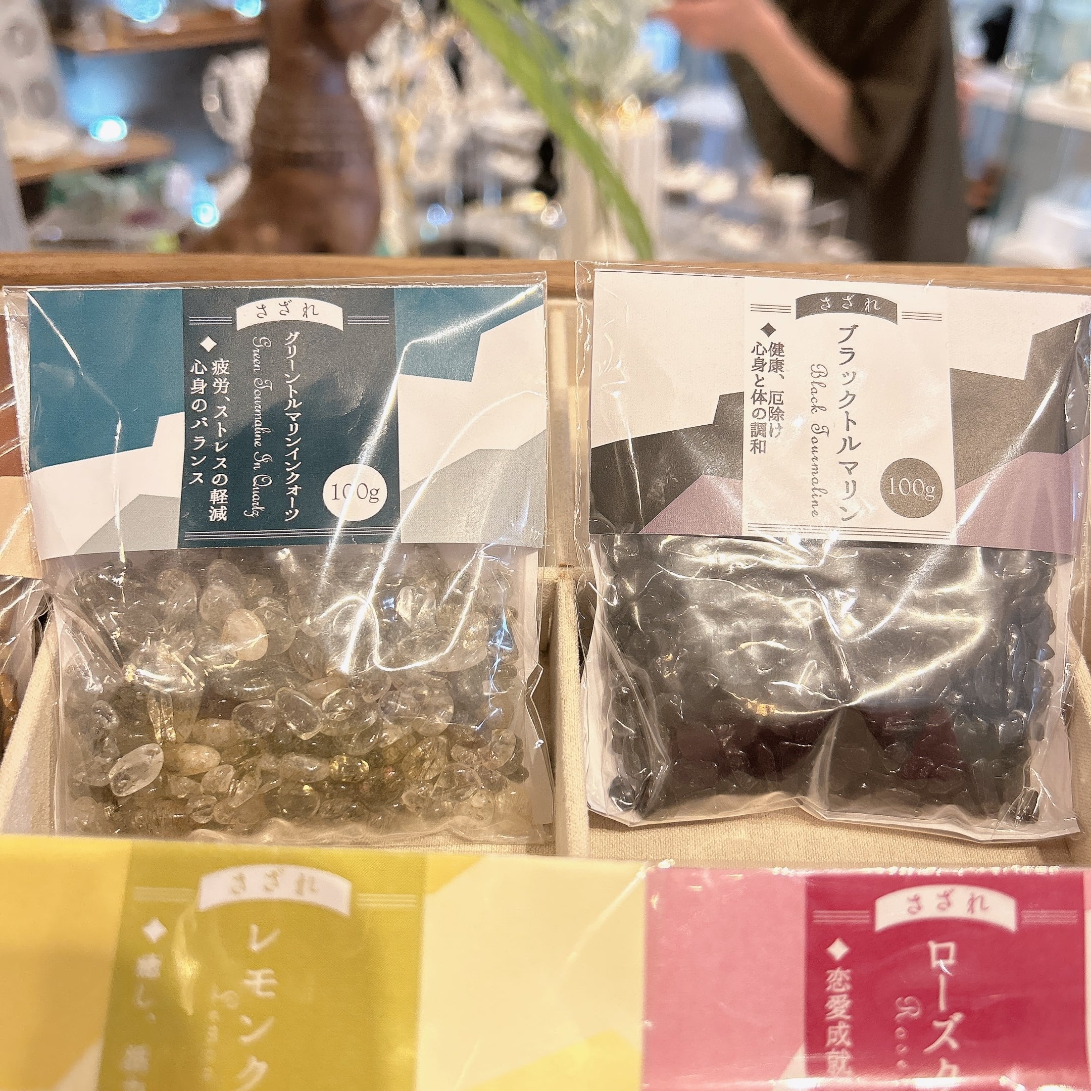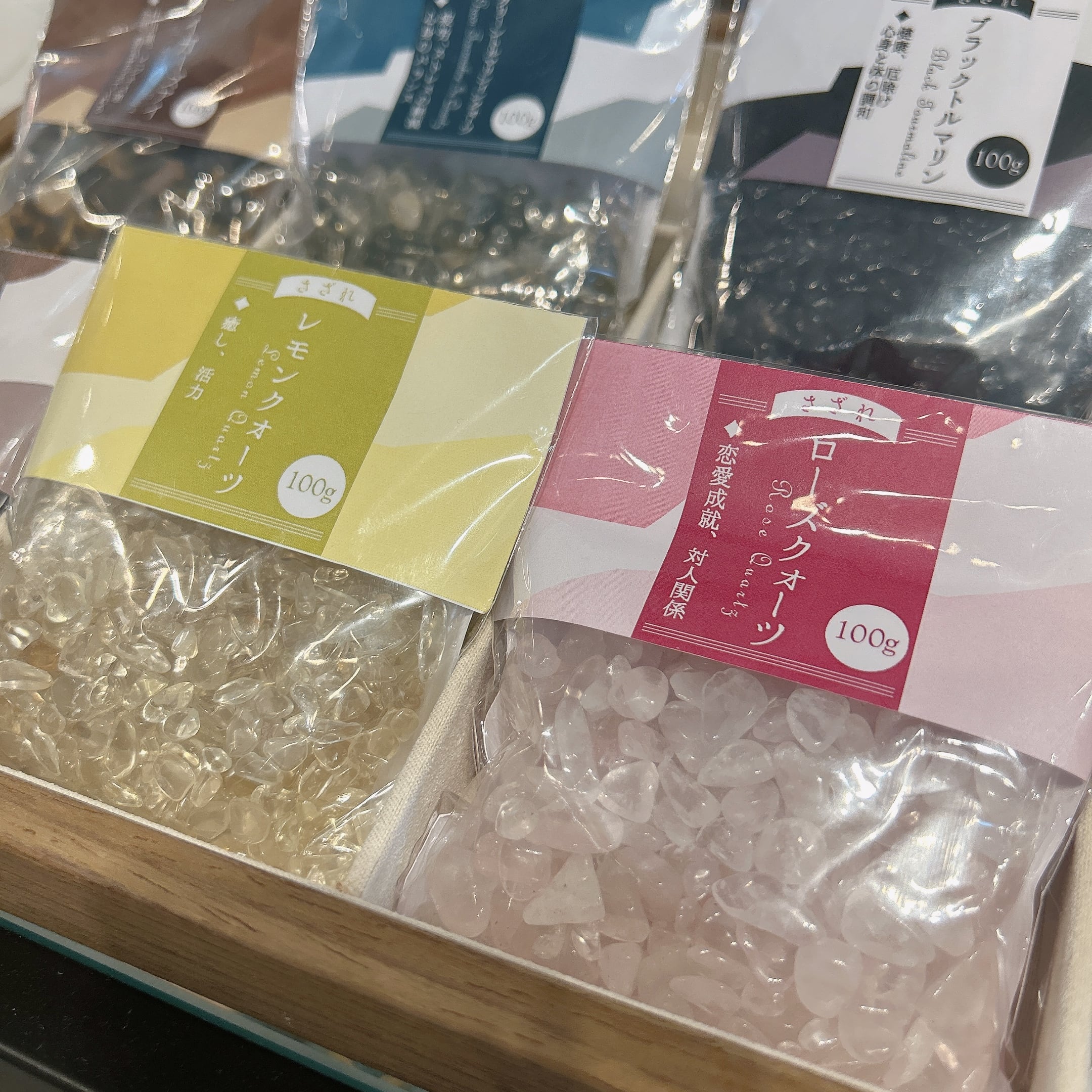 さざれをお皿などに入れ、その上に天然石アイテムを置くと、アイテムがリフレッシュしてパワーを取り戻します。