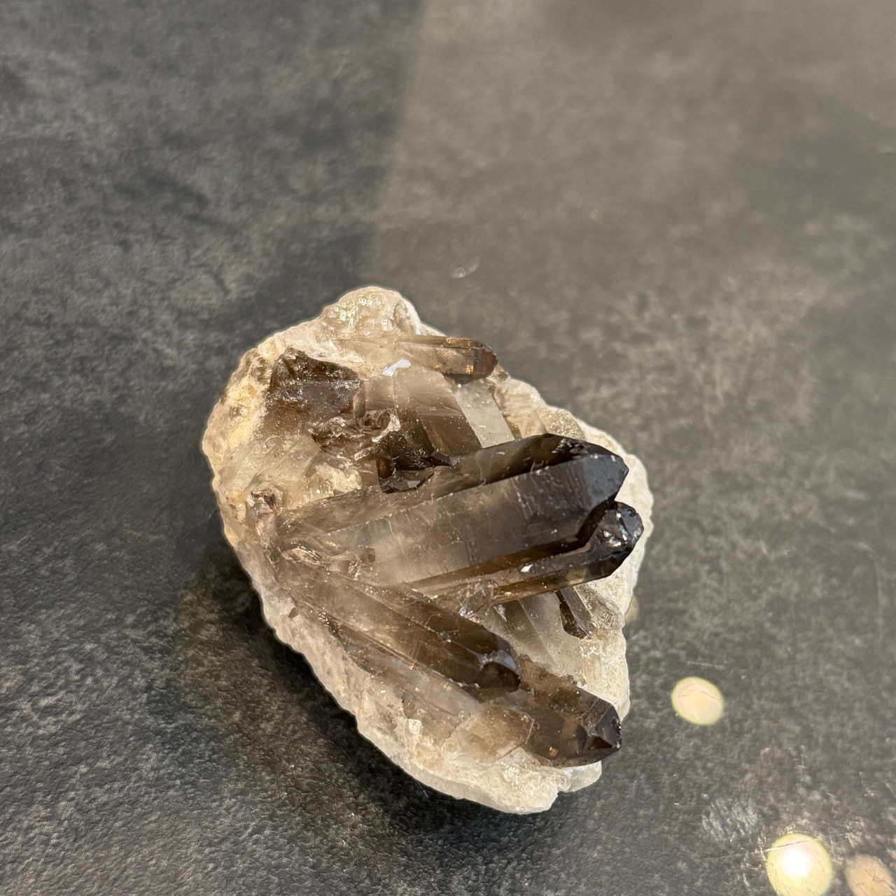 • スモーキークォーツのクラスターは、他の石を優しく守るように浄化してくれるため、ブレスレットやアクセサリーの休息スポットにも最適。
