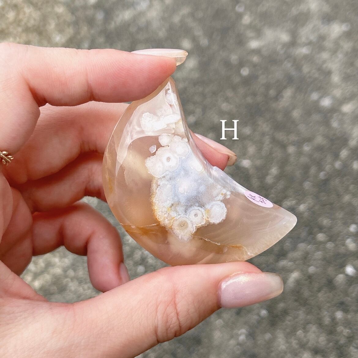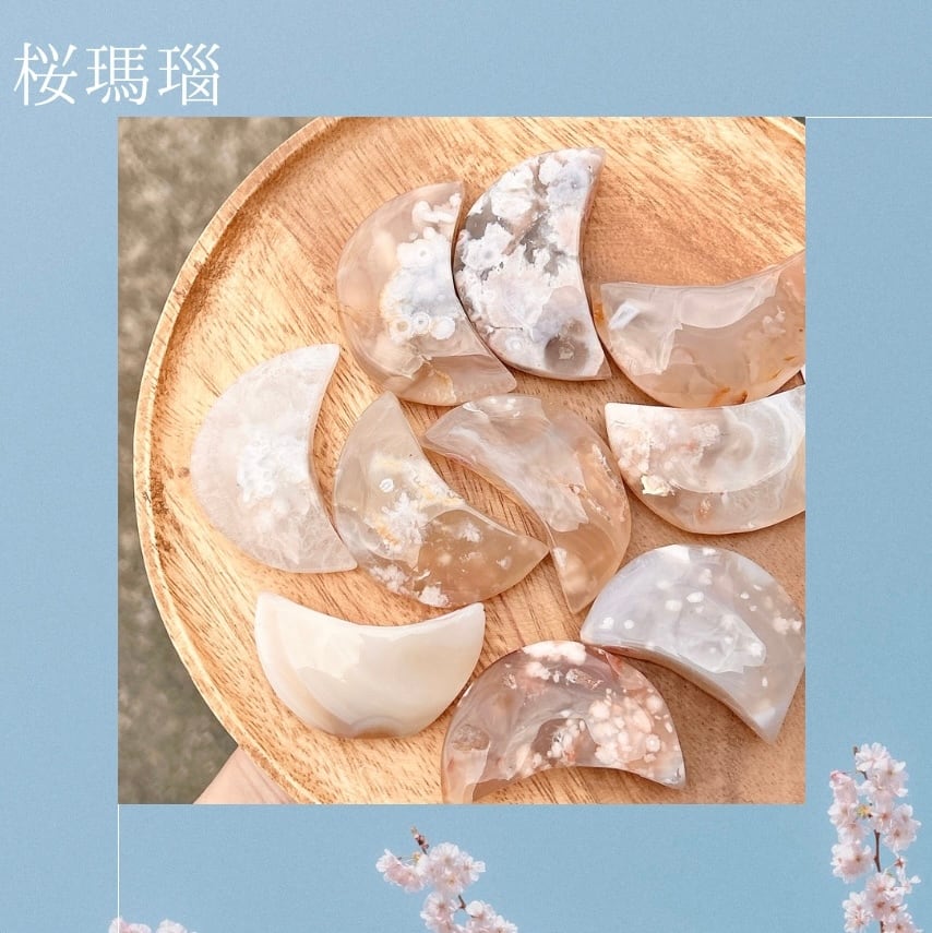 こちらは“桜瑪瑙(チェリーブロッサムアゲート)”を美しい半月型にカットした、見た目もエネルギーもやさしい天然石です∗*゚