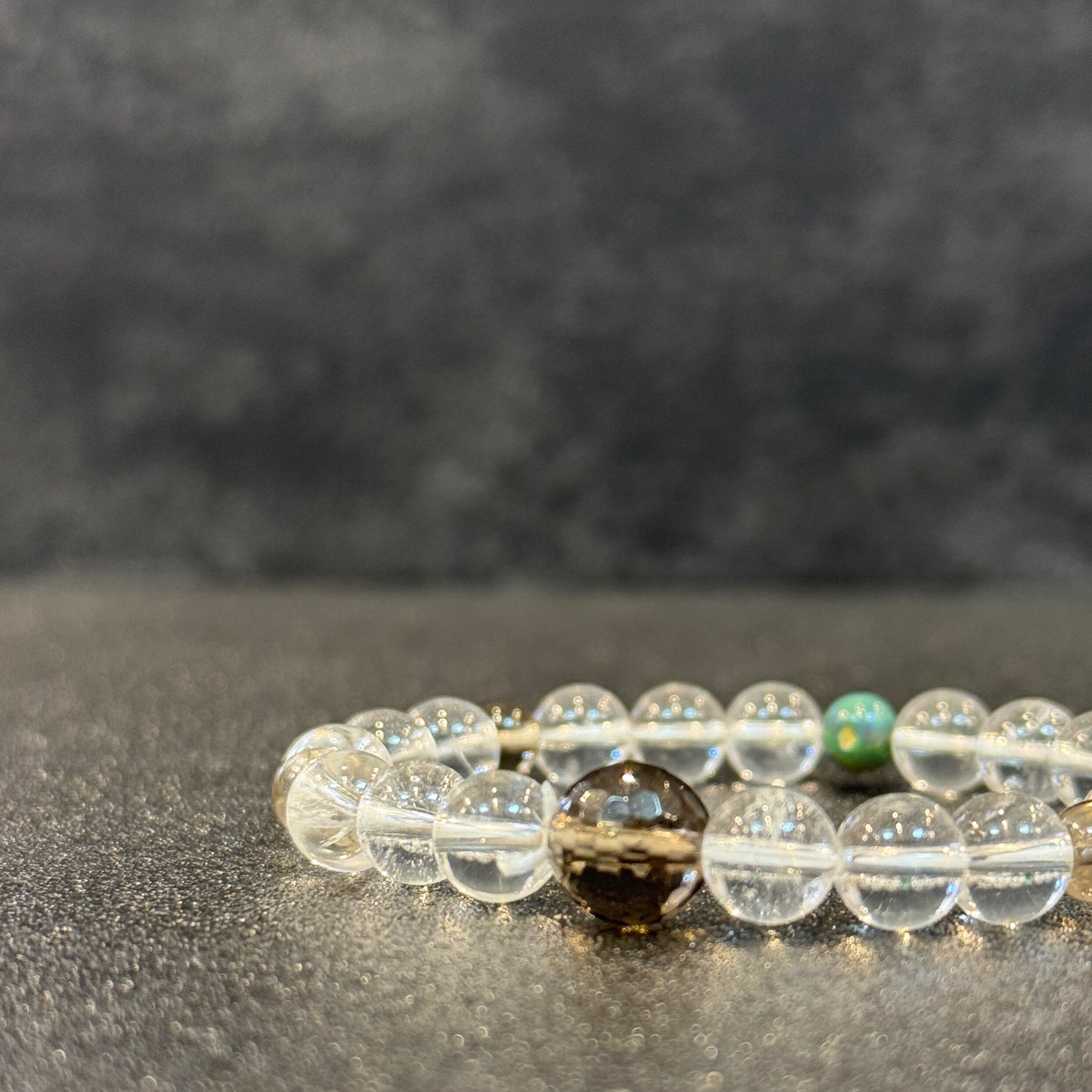 • スモーキークォーツがその繊細さを守り、地に足のついた冷静さを与えます。