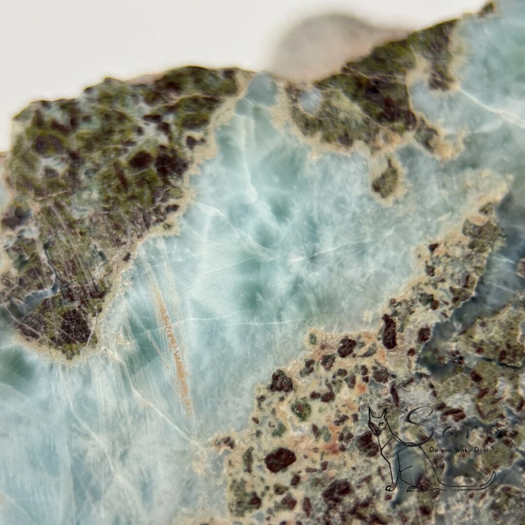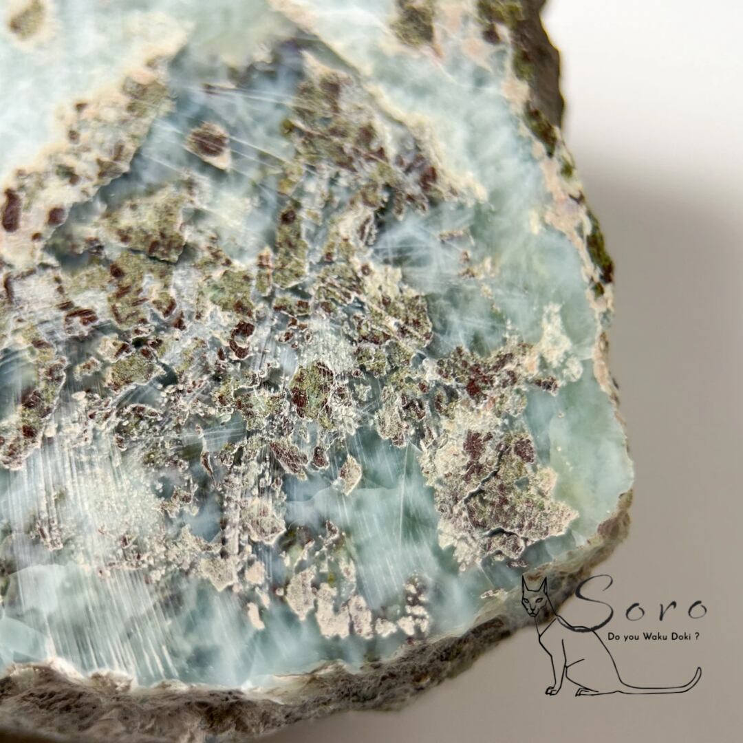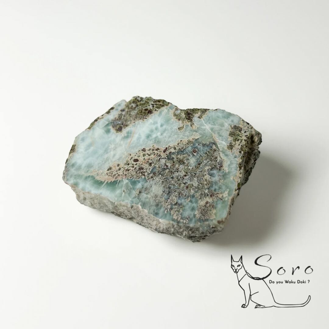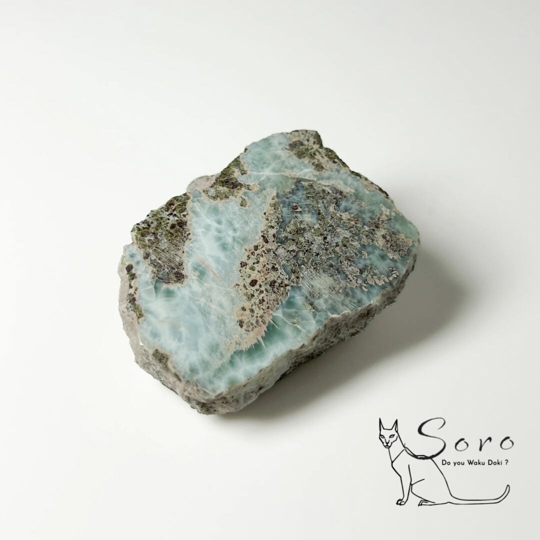 カリブ海のような爽やかなブルーが美しいラリマー原石の置き石。
