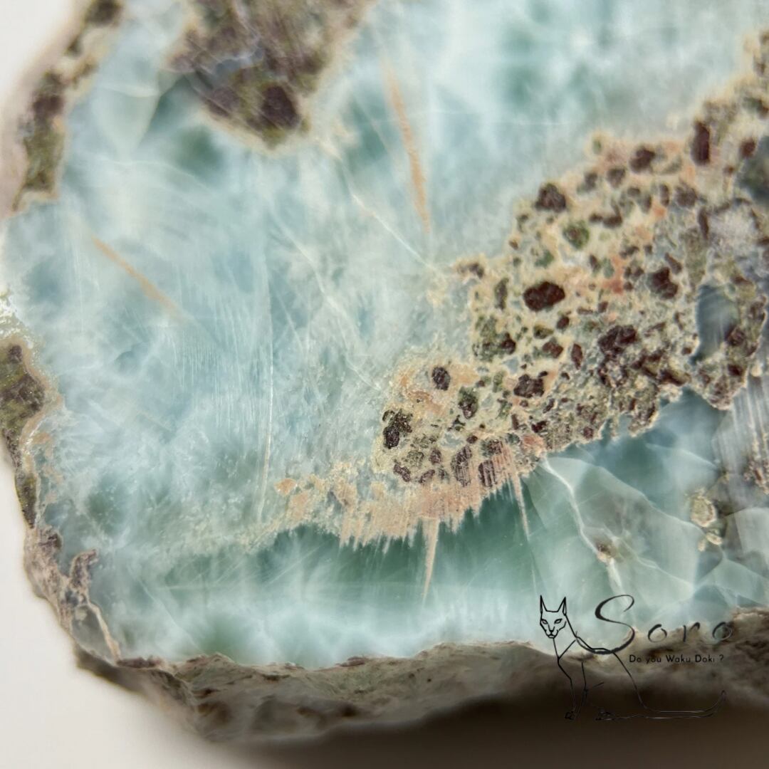 ラリマーはドミニカ共和国でのみ産出される希少石で、「愛と平和の石」として知られています。