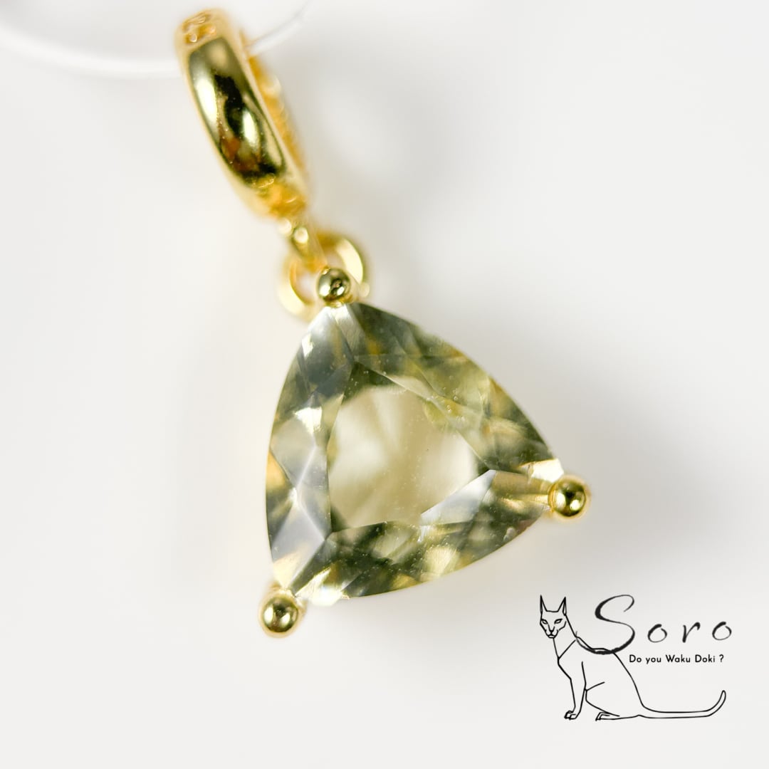 自然が生み出したガラスでありながら、透明感のある淡いイエロー〜シャンパンゴールドの色合いが特徴。