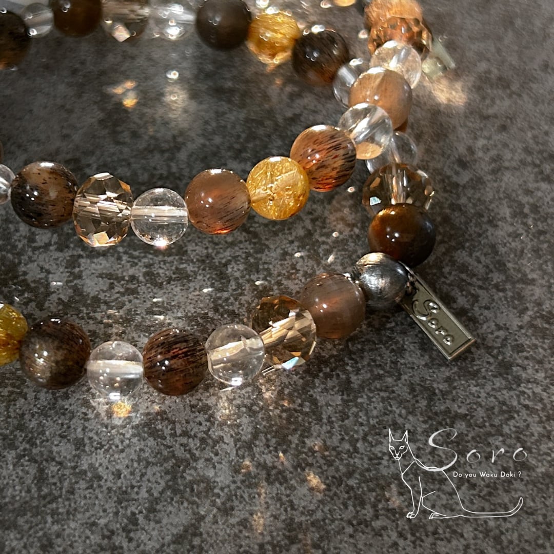 人生の転機や大きな決断の時、自分の軸をしっかりと持ちたい方に寄り添う、特別感のあるお守りブレスレットです。
