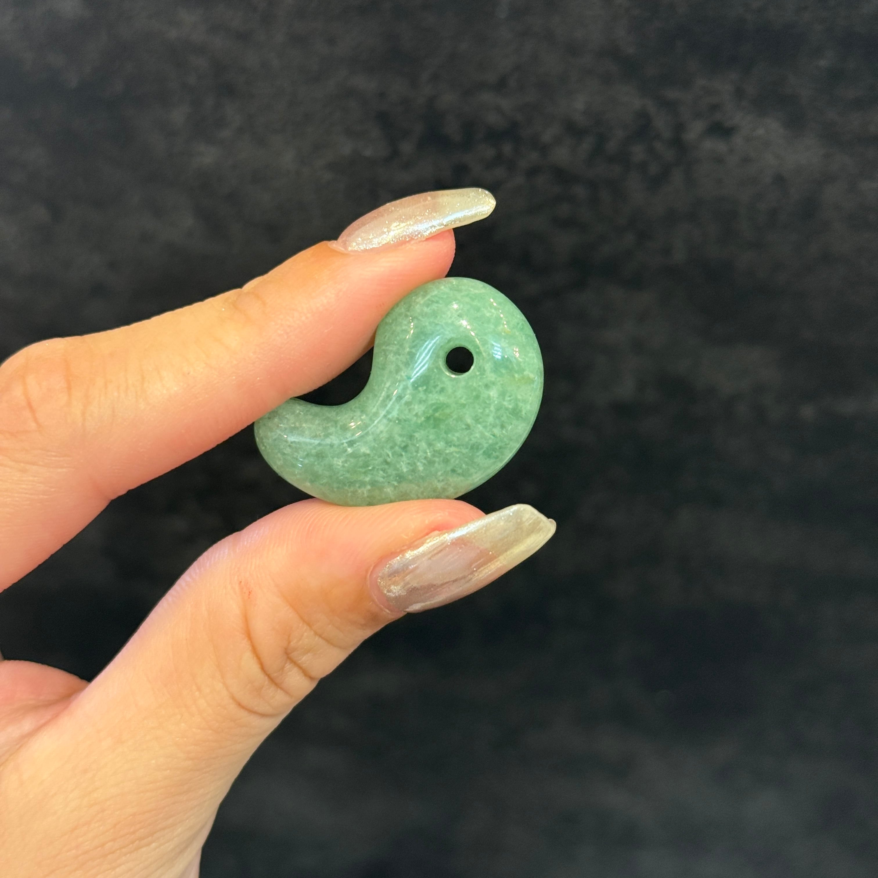 勾玉は古代から魔除け・厄除けの象徴。アベンチュリンの優しい保護力と組み合わさり、持ち主を安心感で包みます。