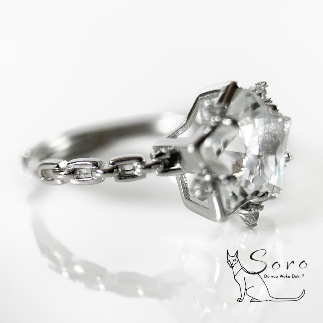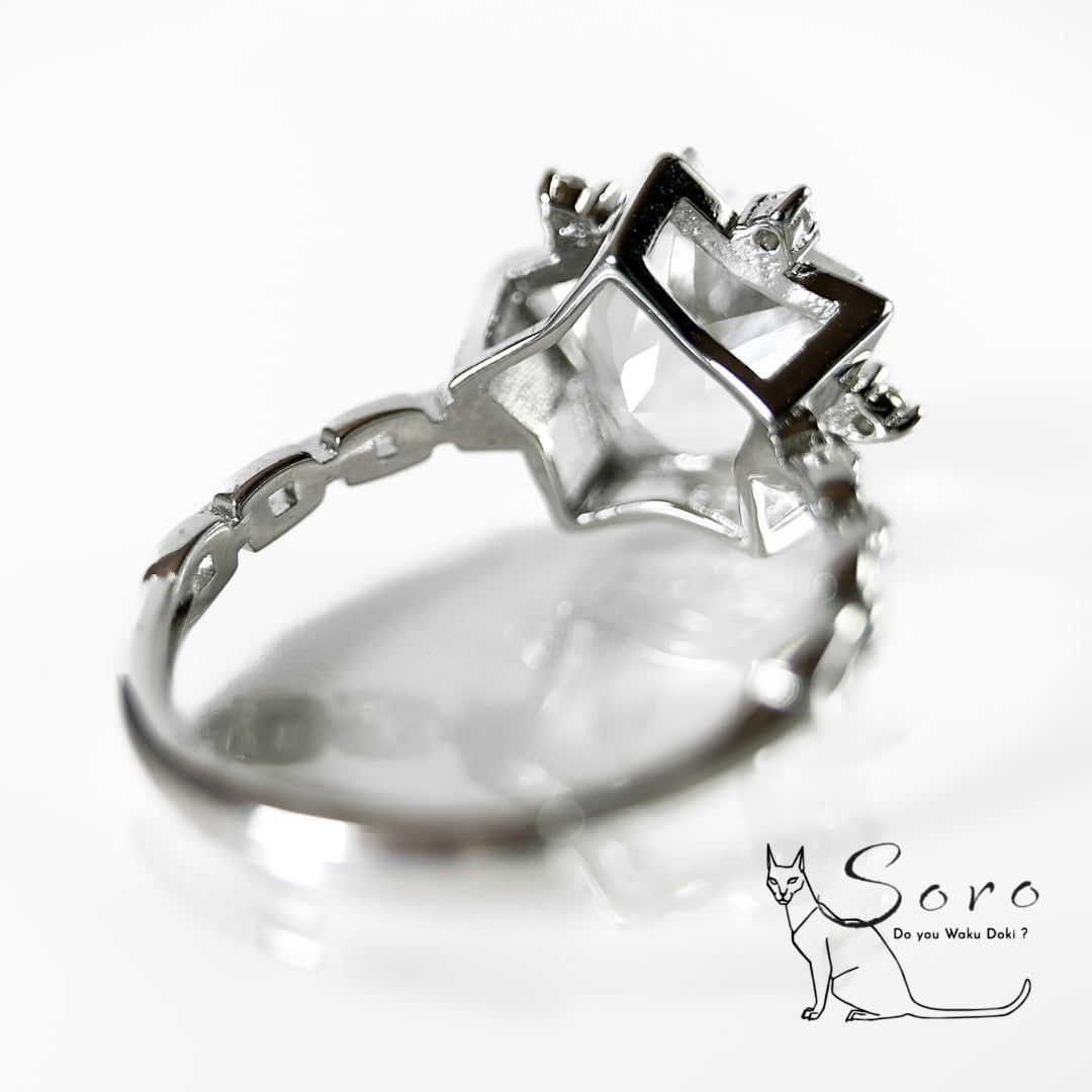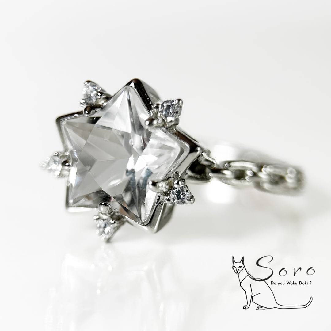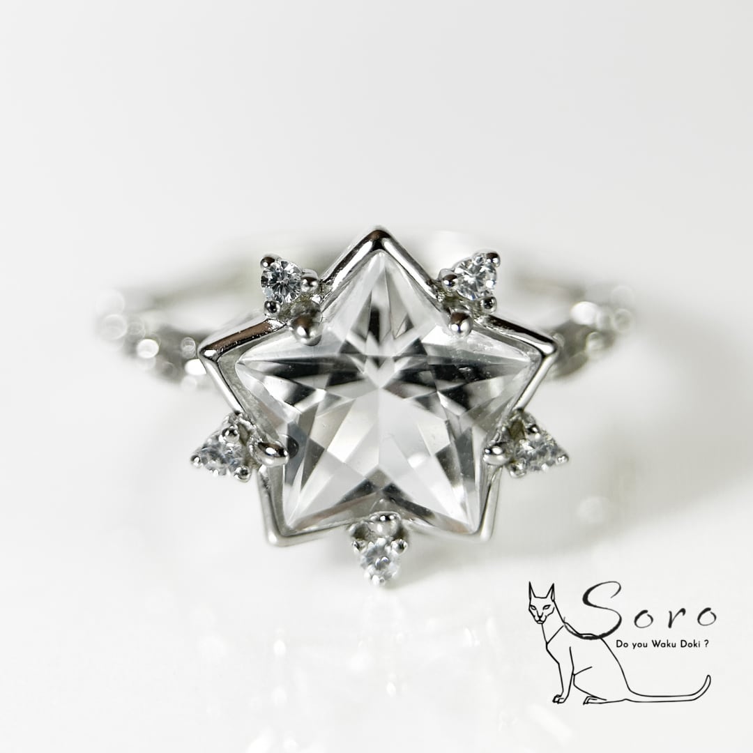 繊細なカットで形作られた星型水晶は、光を受けるたびに静かにきらめき、指元に清らかな存在感を添えます。