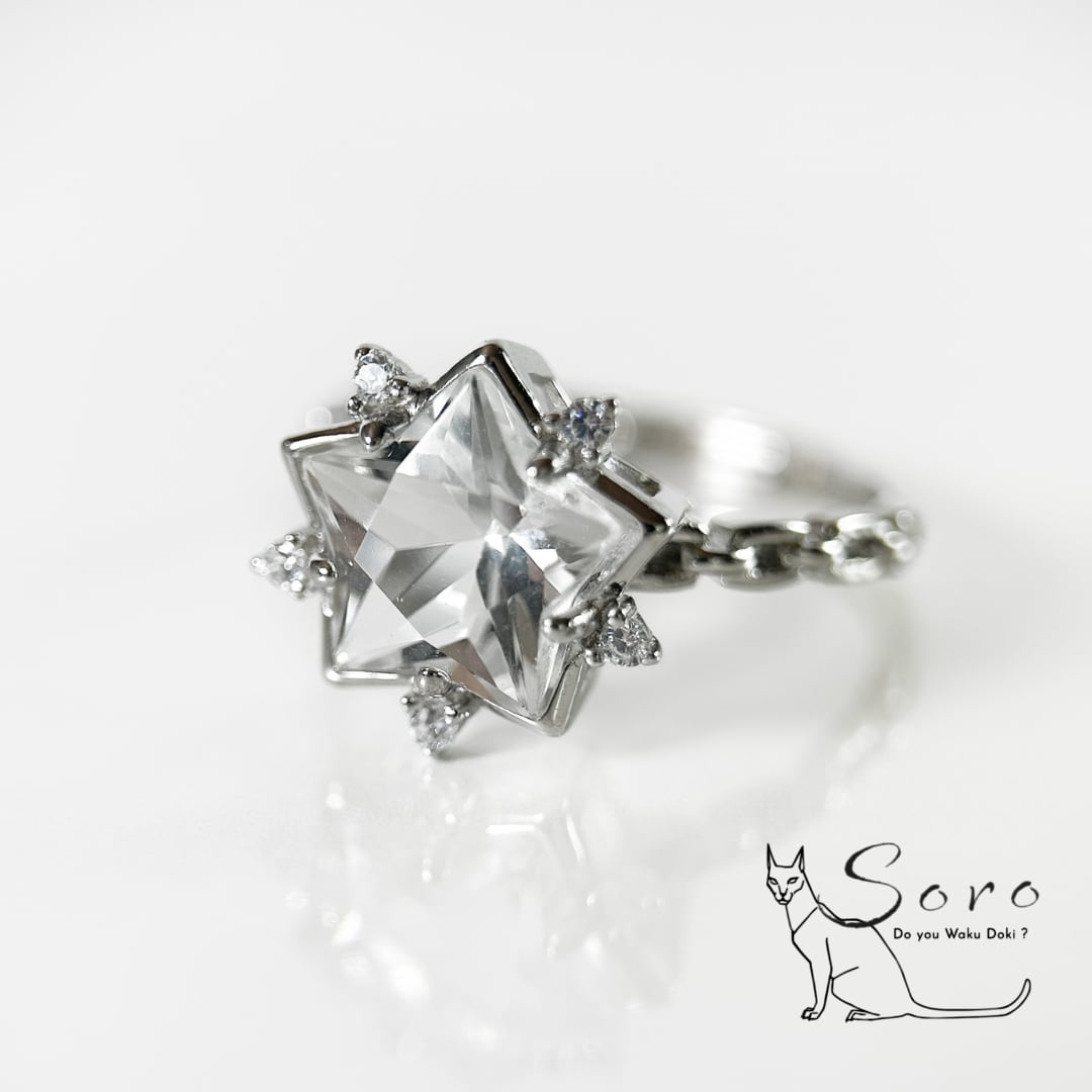 澄みきった輝きを放つ、水晶の星を主役にしたリング。