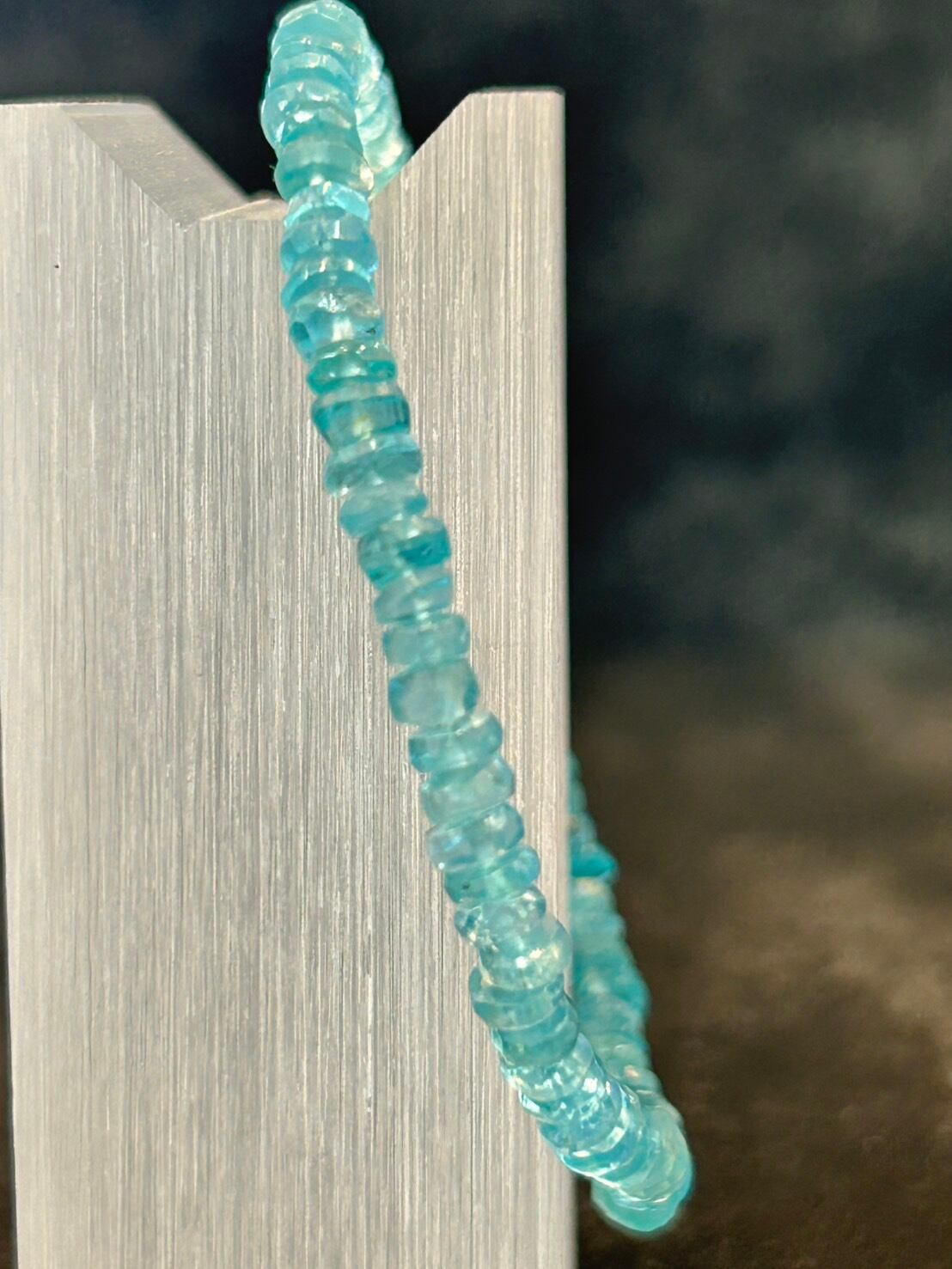 ●このブレスレットは、深い青色が特徴のブルーアパタイトを使用しており、知性と達成を象徴します。持ち主にポジティブなエネルギーを提供し、目標達成に向けての勇気を与えてくれるでしょう。