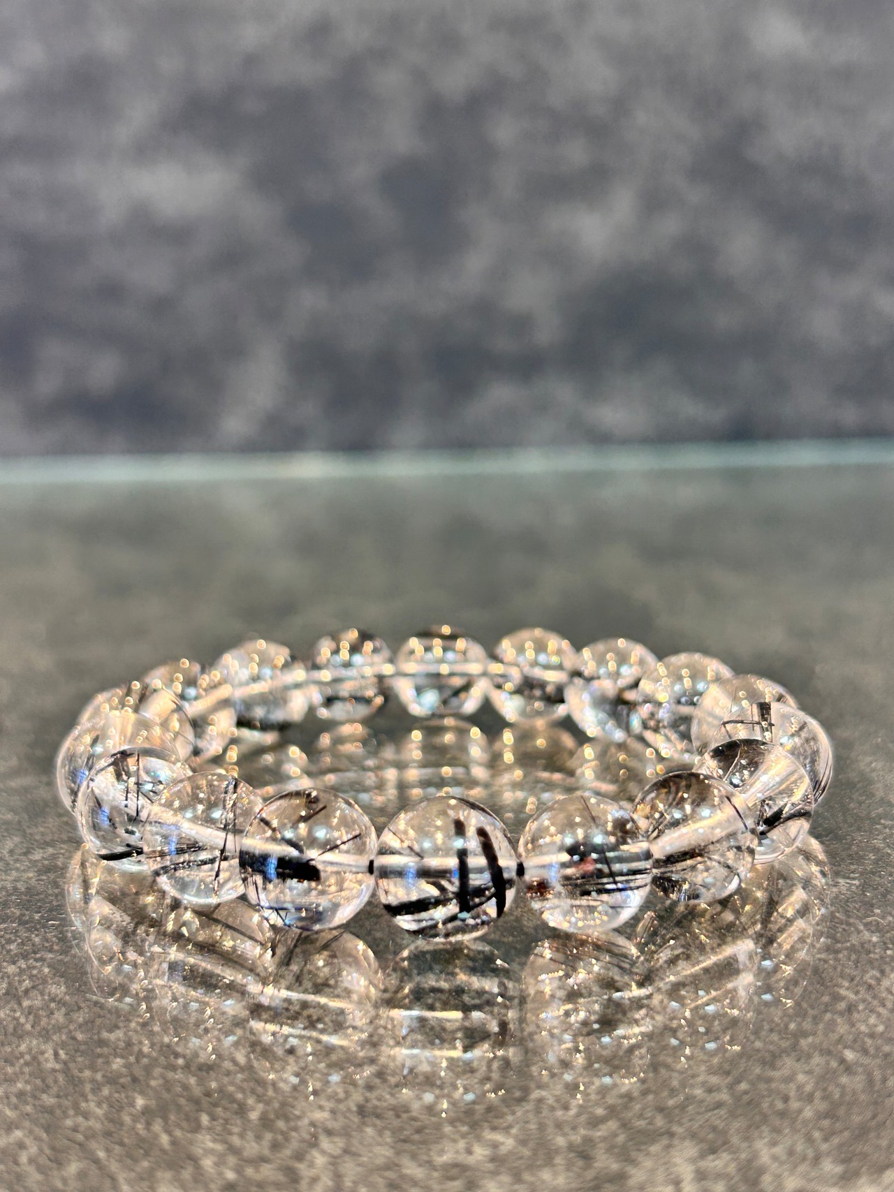 ●このブレスレットは、深い黒色に金色の針状結晶が映えるブラックルチルクォーツを使用しており、自己実現と繁栄を象徴しています。持ち主に心強いエネルギーを与え、その結果を実現する手助けをしてくれるでしょう。