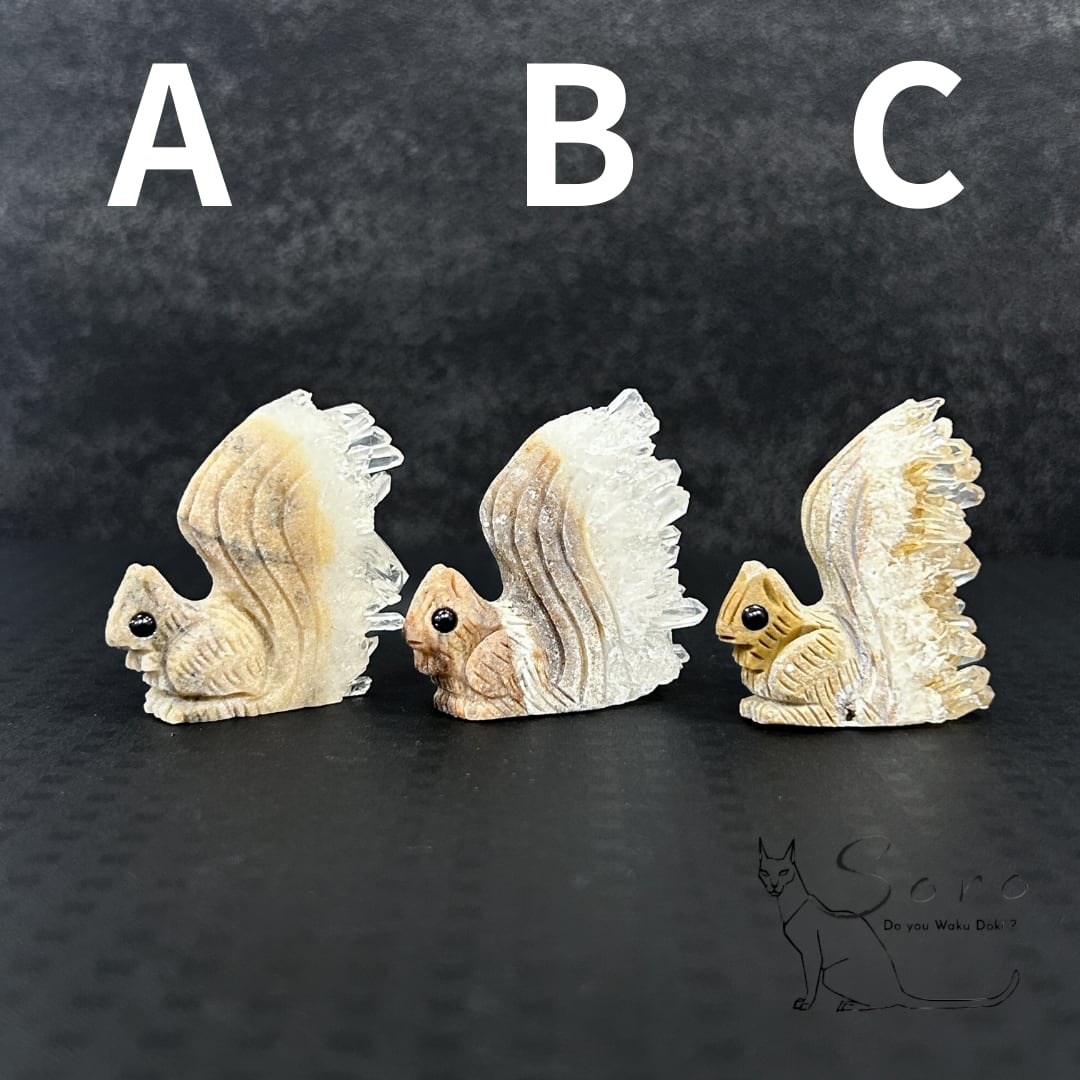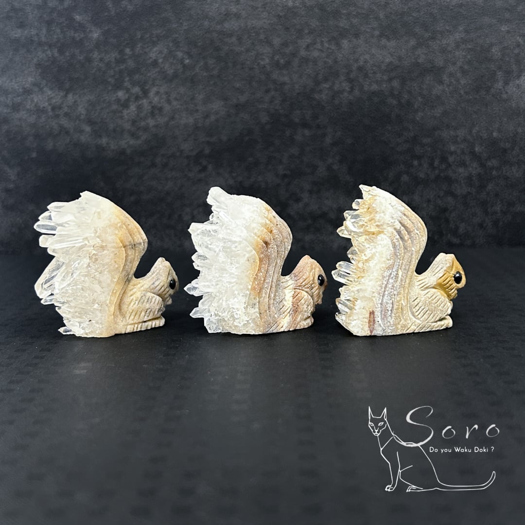 澄みきった光を宿す水晶を贅沢に使用した、リスモチーフのヒーリングストーン彫刻。