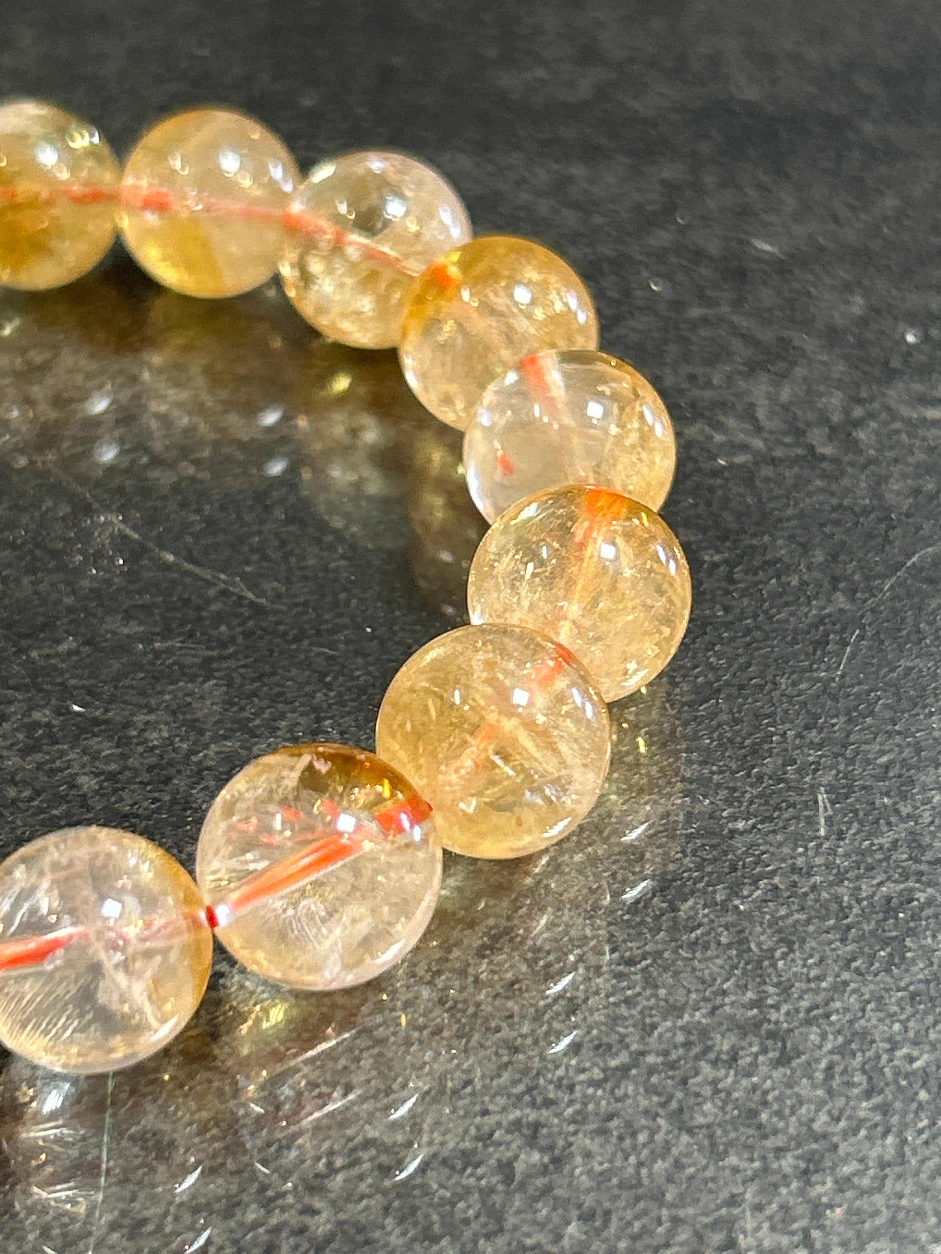 こちらは、神秘的な層が魅力の「ファントムシトリン」のブレスレットです。美しいクリスタルの層を持つファントムシトリンは、特にその独特な模様が見る人を惹きつけます。