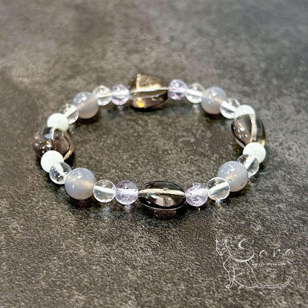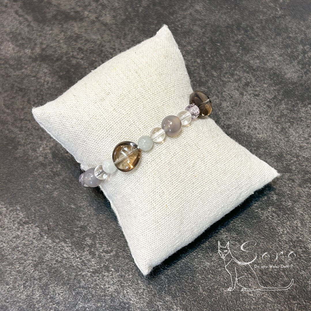 落ち着いた色合いと上品な輝きで、心と体をやさしく整えてくれるブレスレットです。
