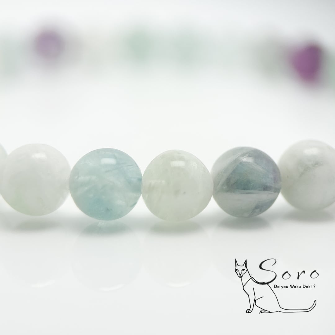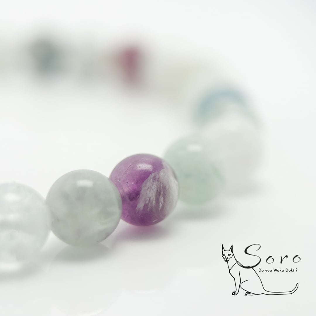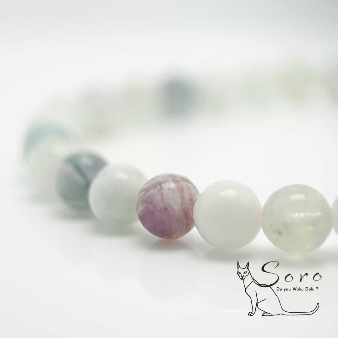 透明感のあるミントグリーンやラベンダーカラーが、静かに心を整えてくれるブレスレットです。