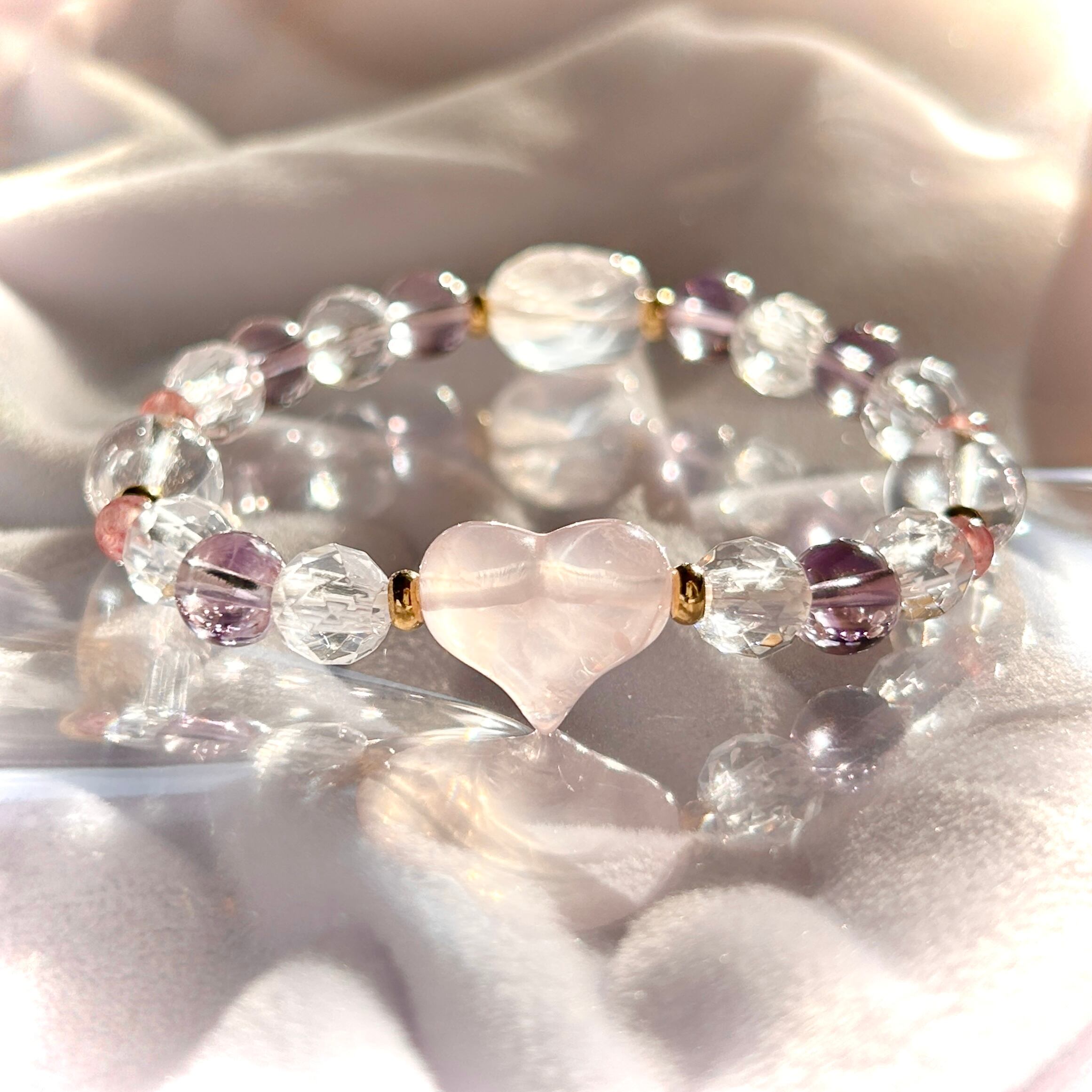 ・ハートローズクォーツ 横 約13.5mm x 縦 約16mm