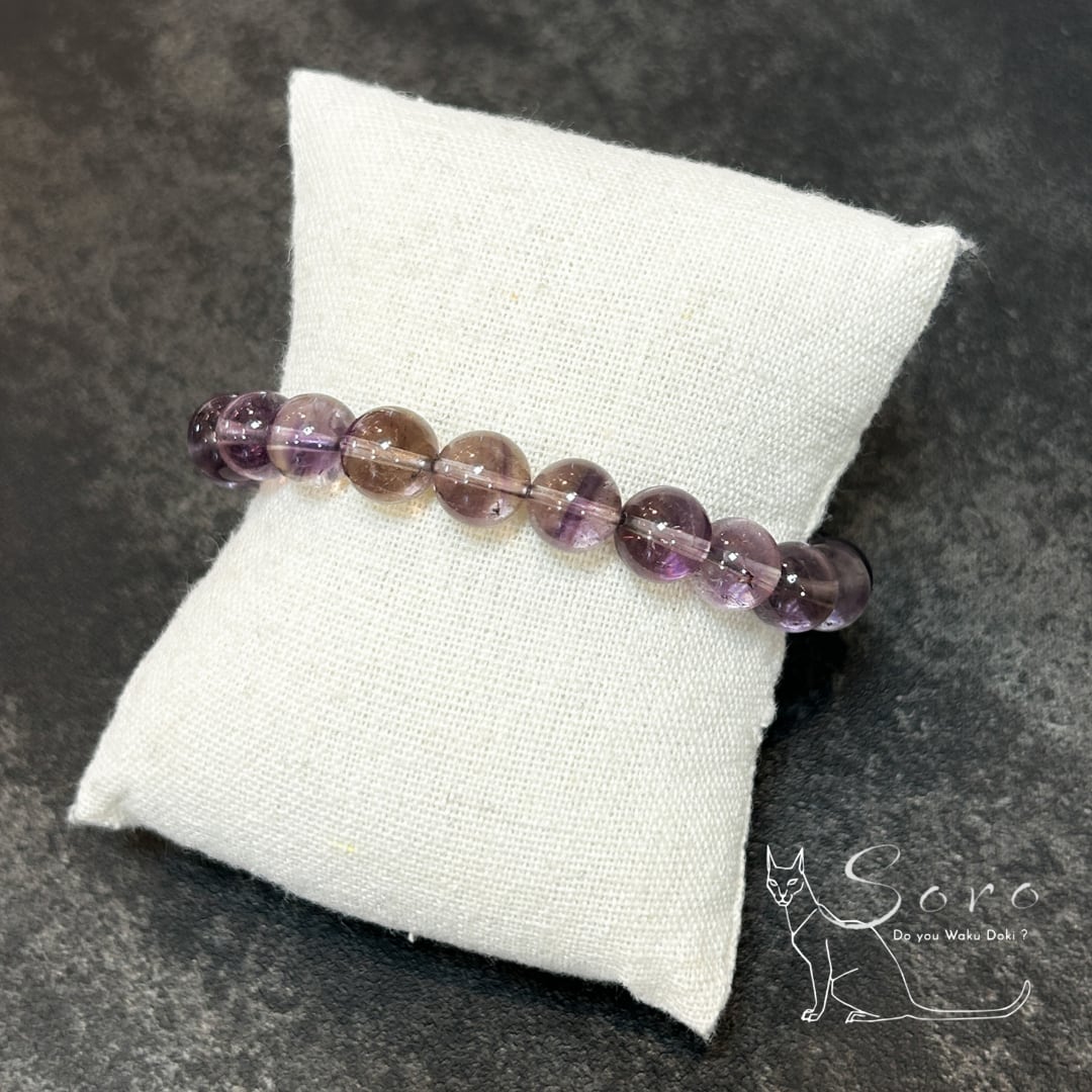 スモーキーの安定感とアメジストの癒しが調和し、手元に穏やかな存在感を添えてくれる一本。