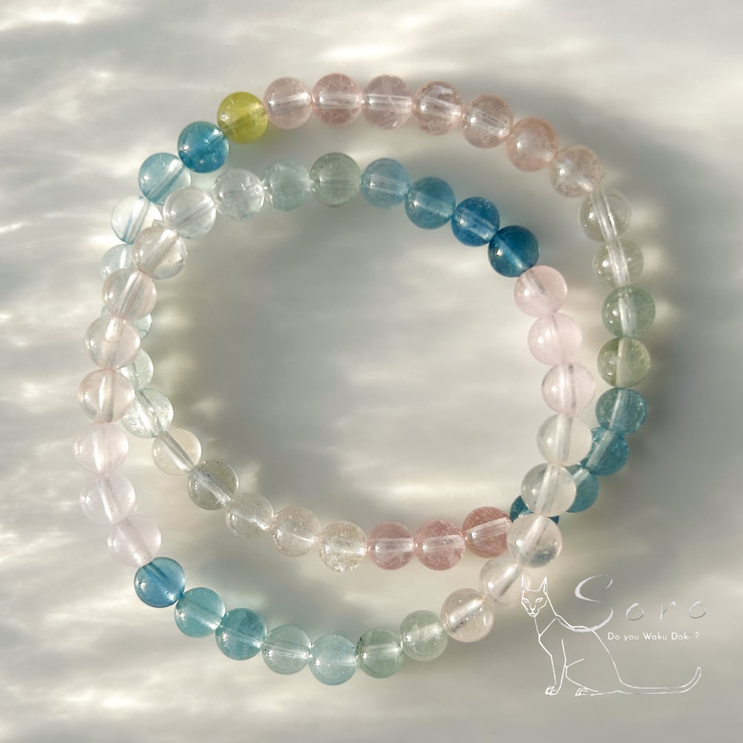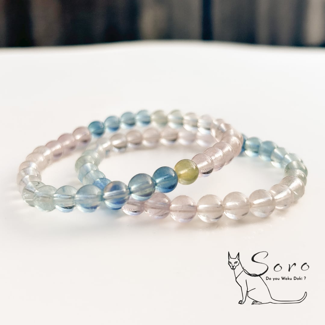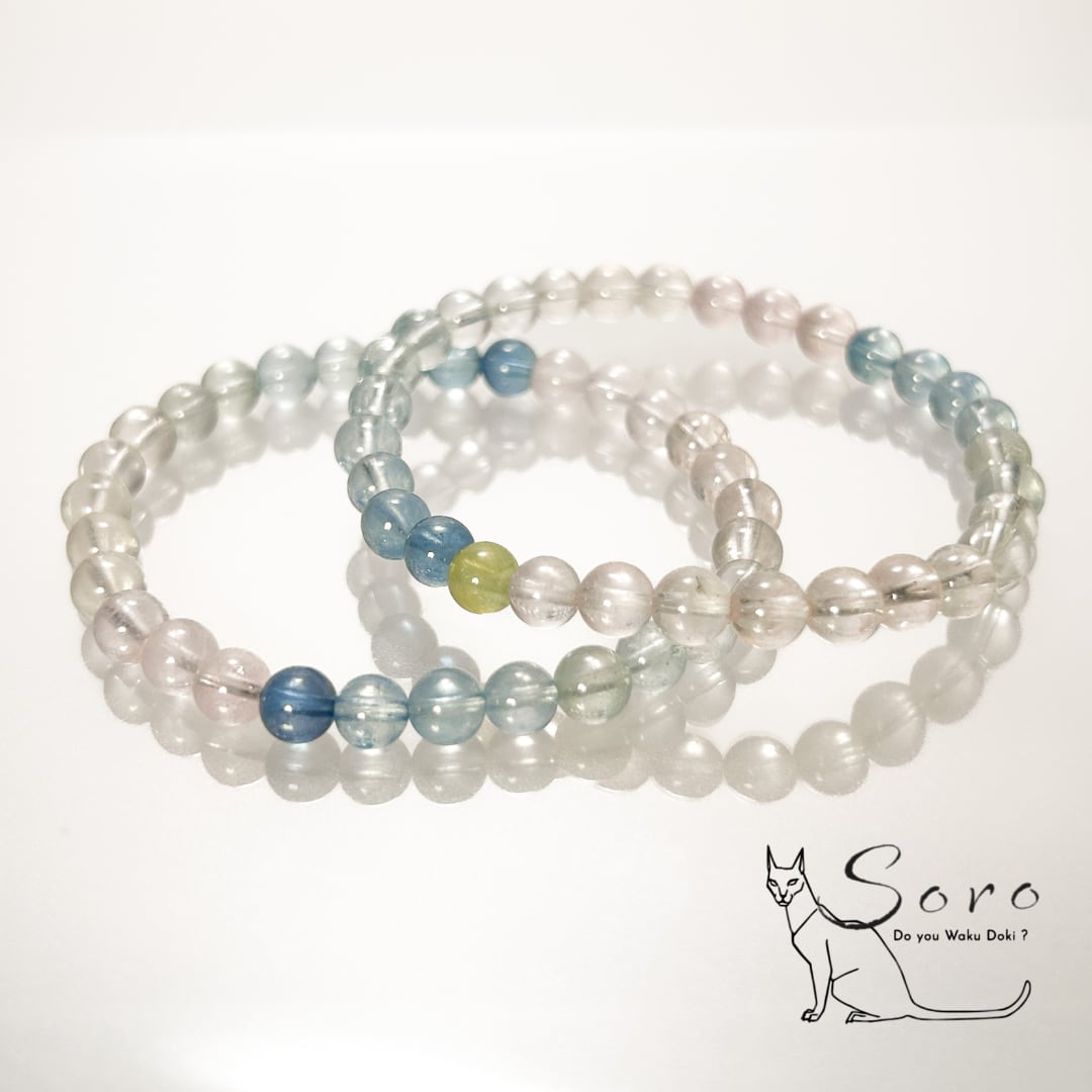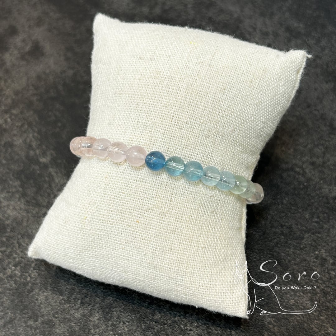 透明感あふれる色彩が、日常に静かな輝きを添えるブレスレット。