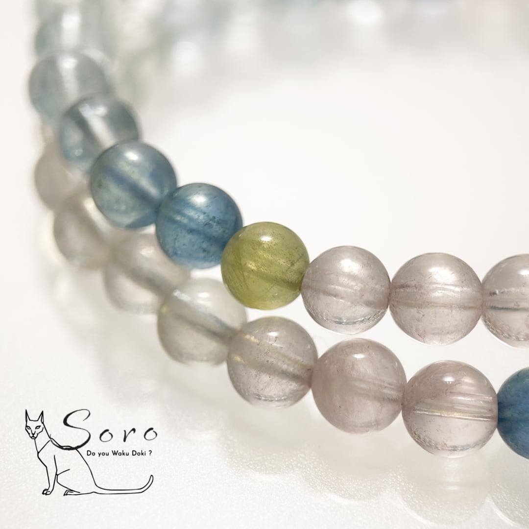 アクアマリン、モルガナイト、ヘリオドールなど、ベリル系ストーンが優しく溶け合うミックスベリル。