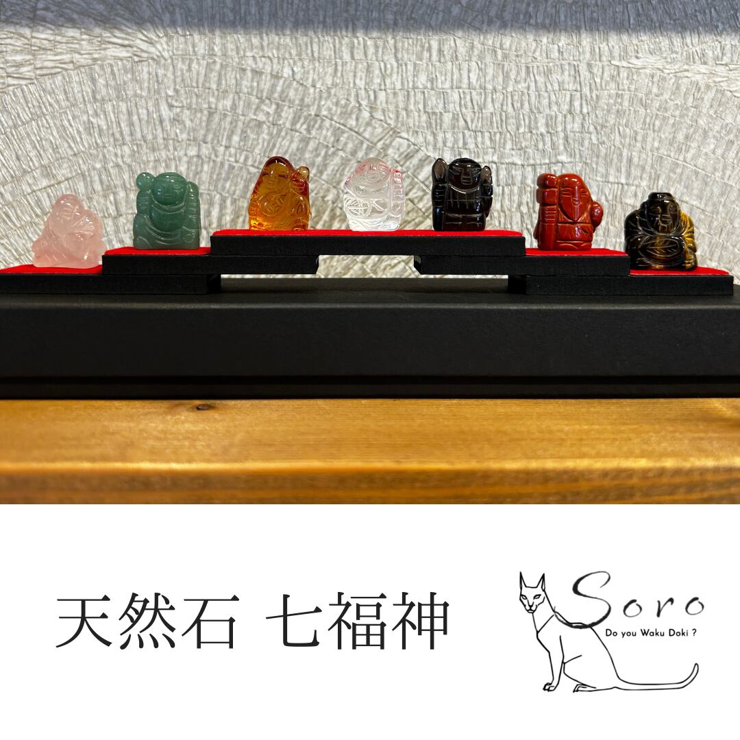 それぞれの七福神を、意味に寄り添う天然石で彫刻した特別な七体セット。