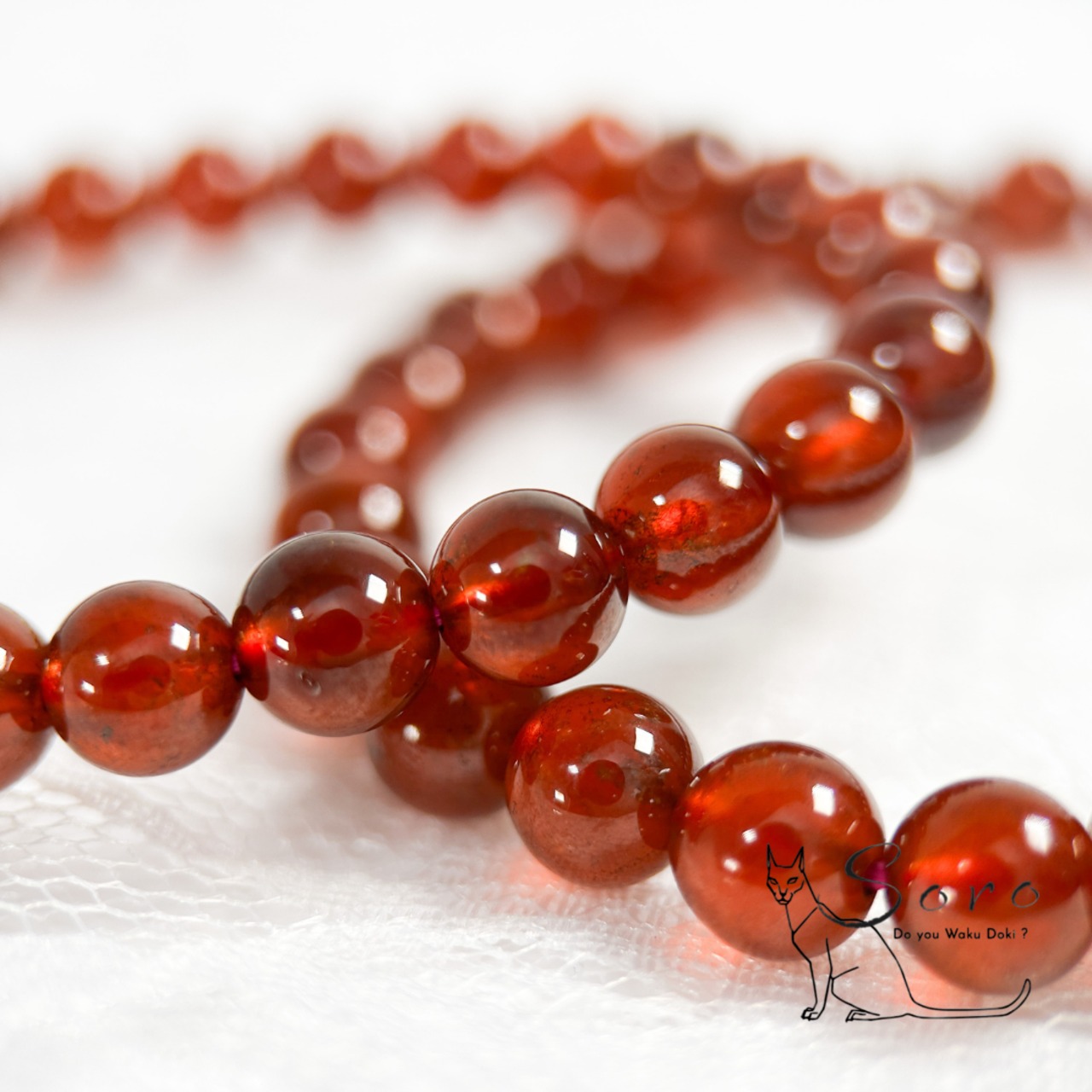 静かな情熱を宿す、ヘソナイトガーネットブレスレットです。