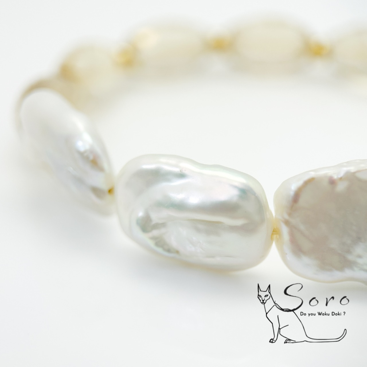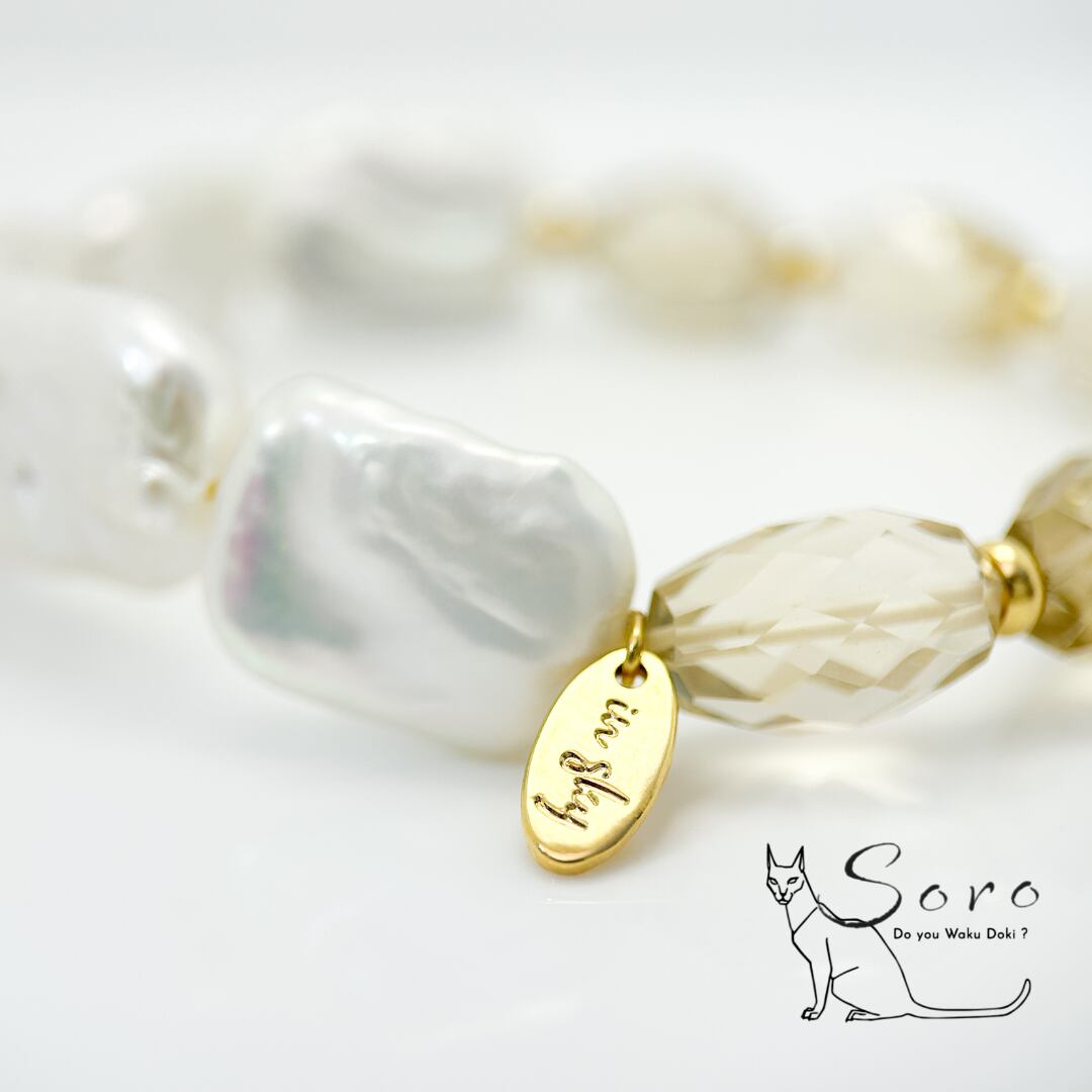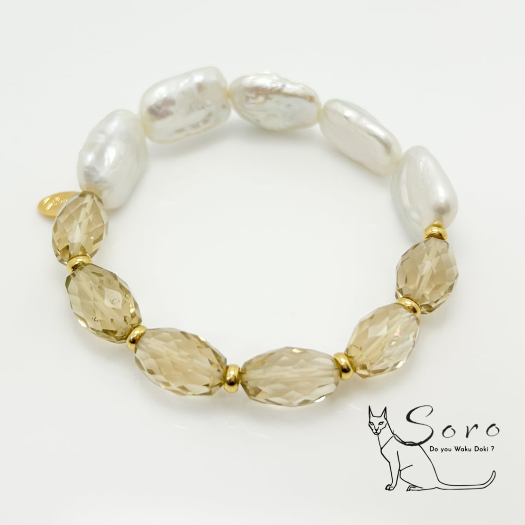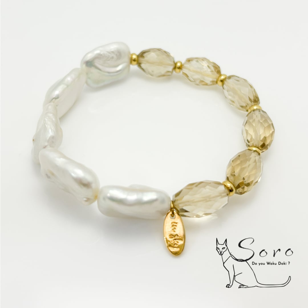 柔らかな艶を放つ淡水パールと、透明感あふれるレモンクォーツを組み合わせたブレスレット。