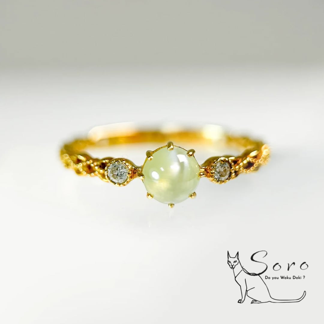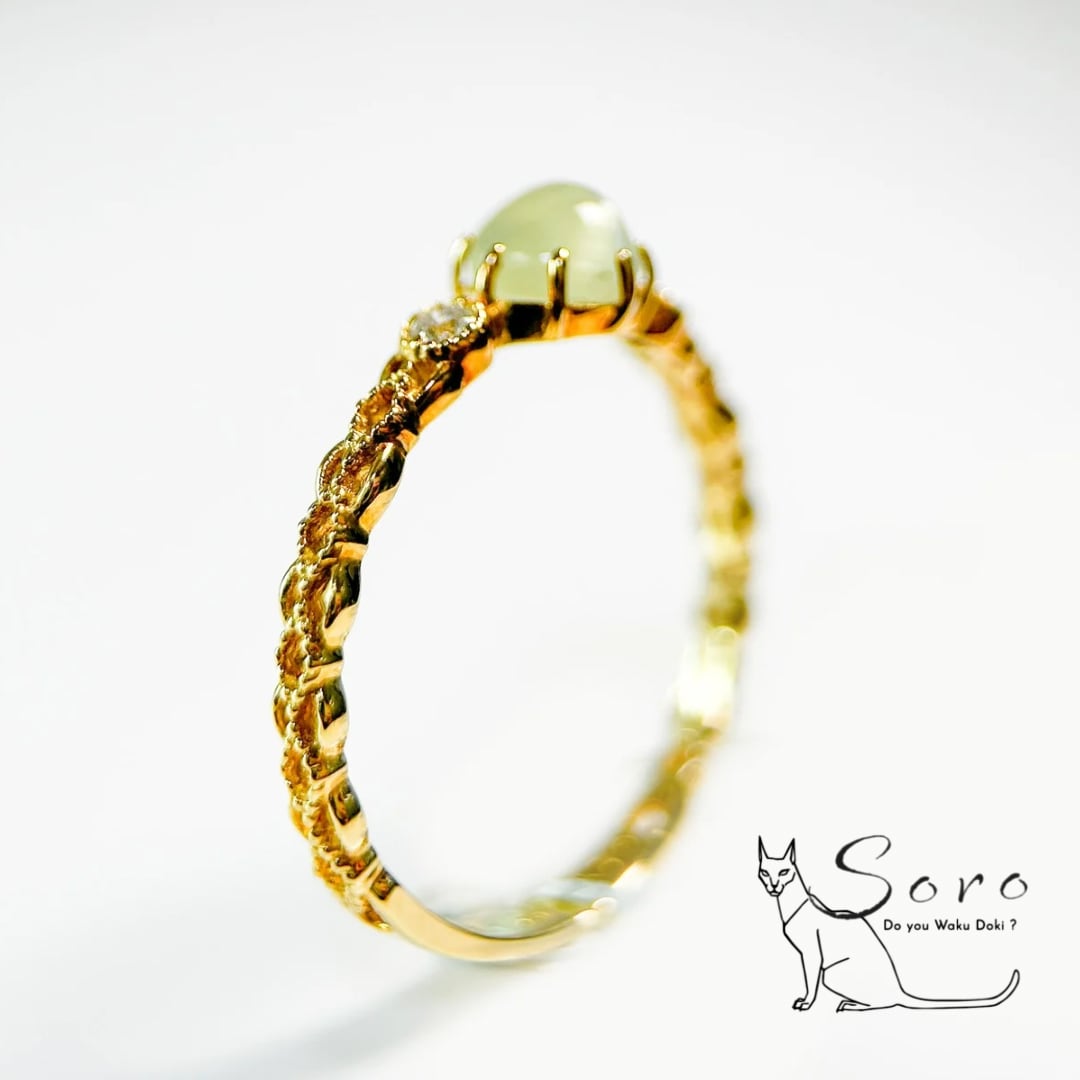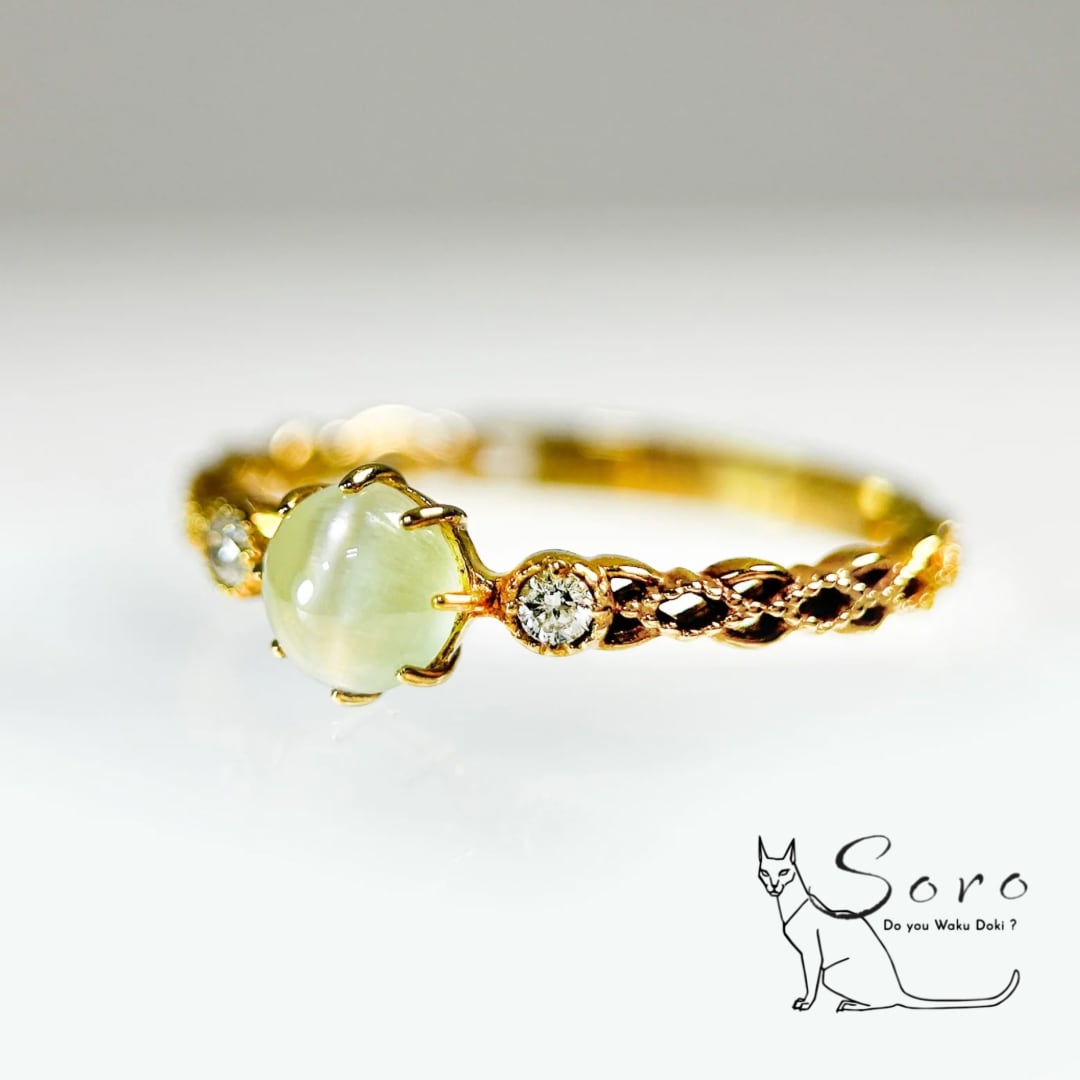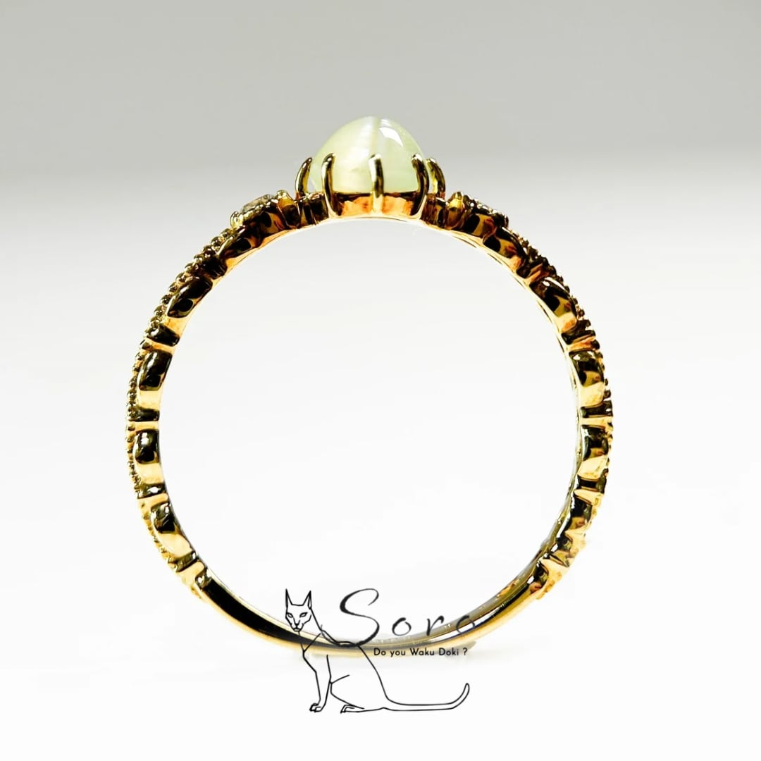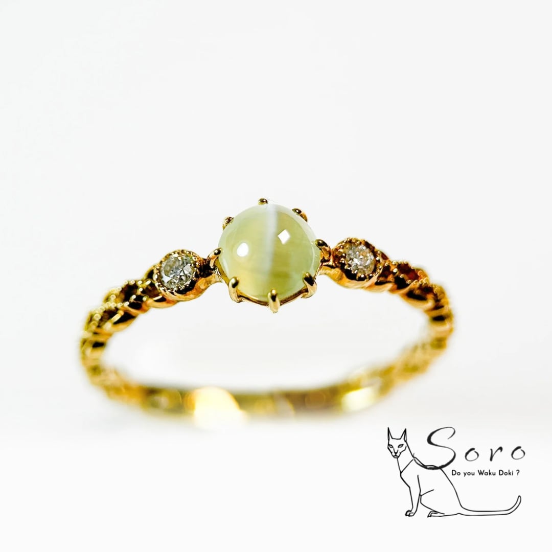 【K18リング】クリソベリルキャッツアイ×ダイヤモンド [jsw-0047]