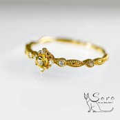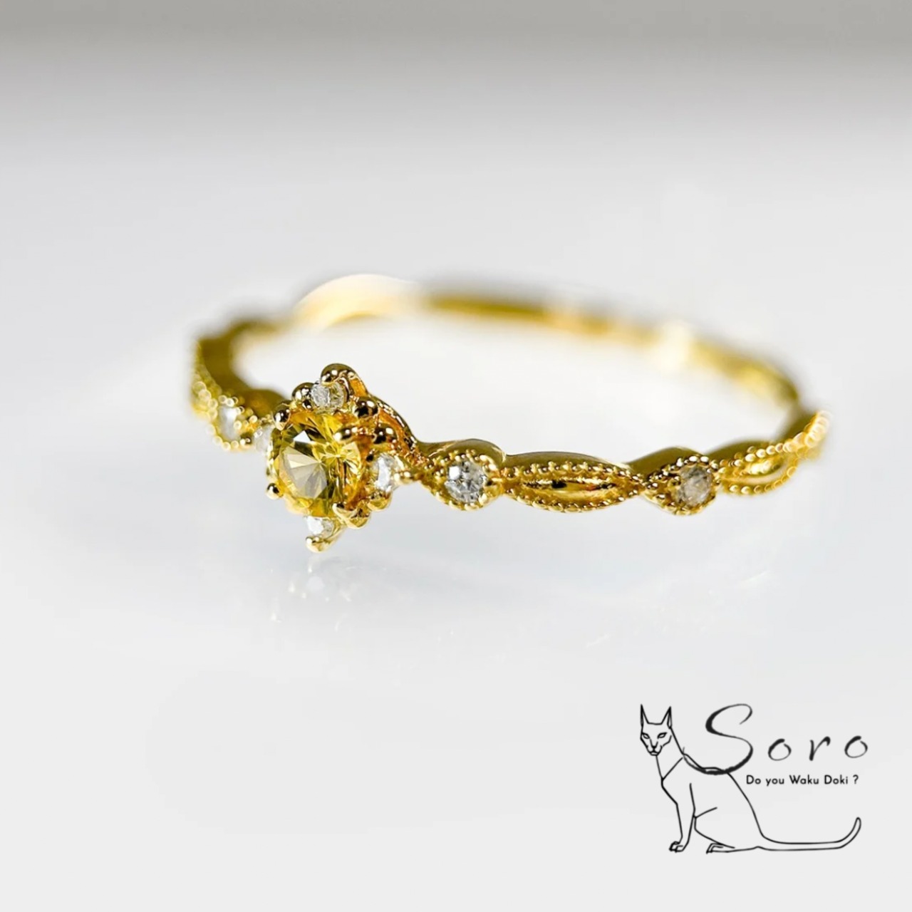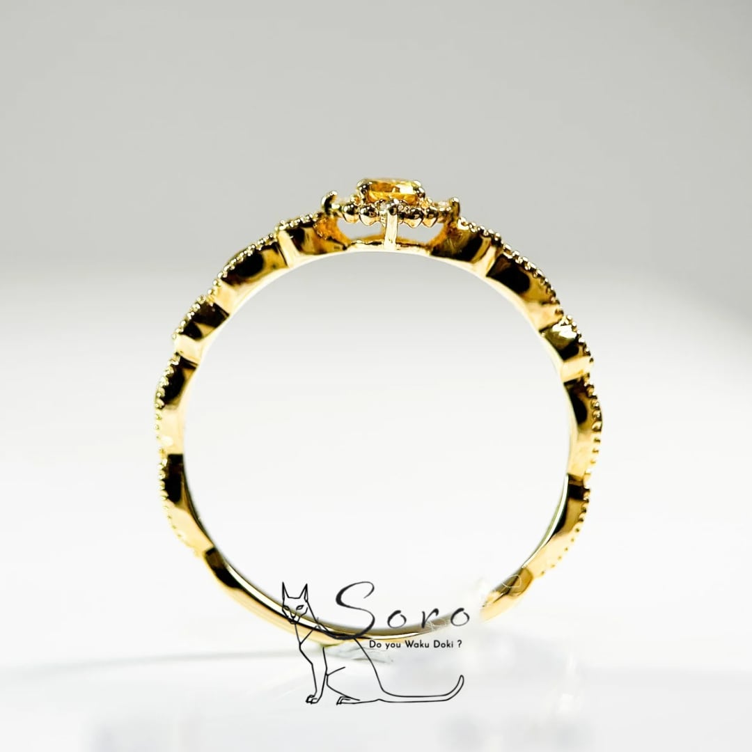 イエローサファイアの明るく華やかな輝きに、ダイヤモンドの澄んだ煌めきを添えたリング。