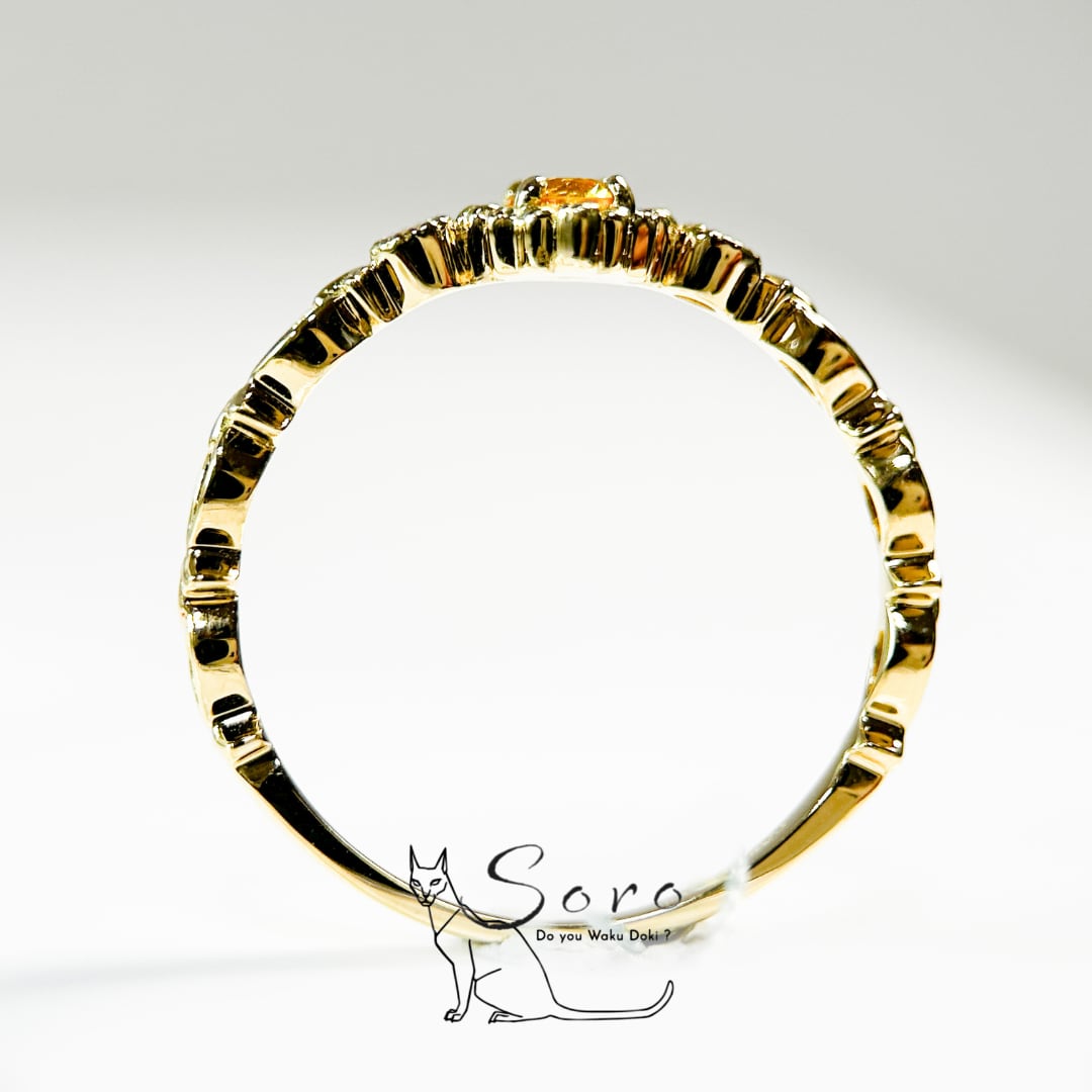 太陽のような温かみを持つイエローサファイアは、透明感のあるゴールドカラーが魅力で、指元に幸福感と前向きな印象を与えてくれます。