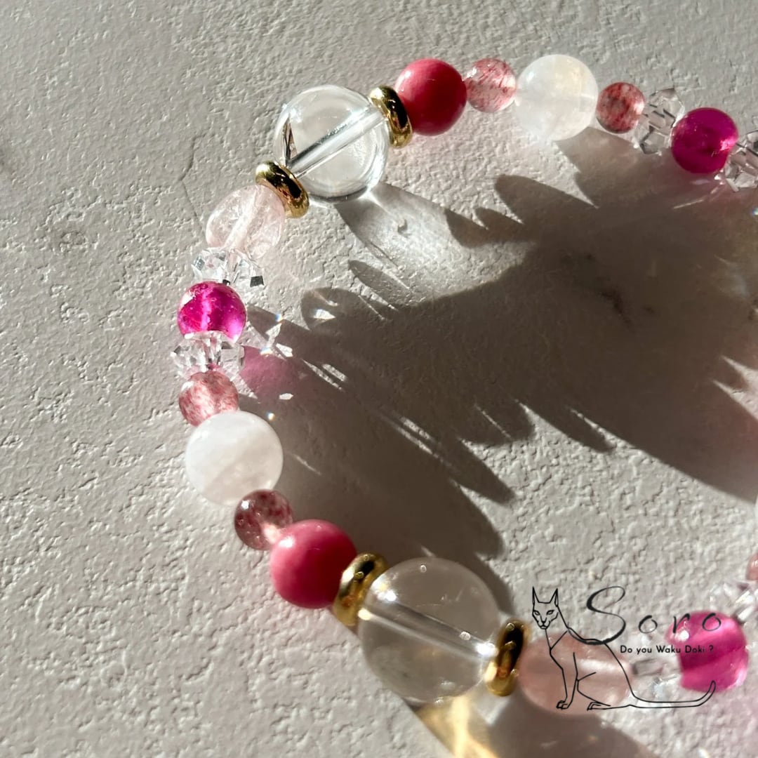 恋愛や人間関係に向き合いたい時、自分自身を大切にしたい時に寄り添う、やさしさと力強さを併せ持つお守りブレスレットです。