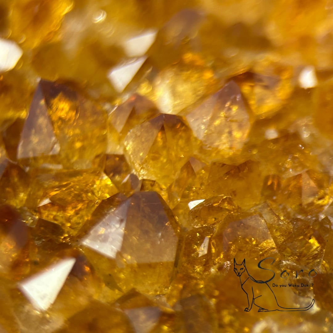 空間を明るく整え、前向きなエネルギーを運ぶシトリンクラスターです。