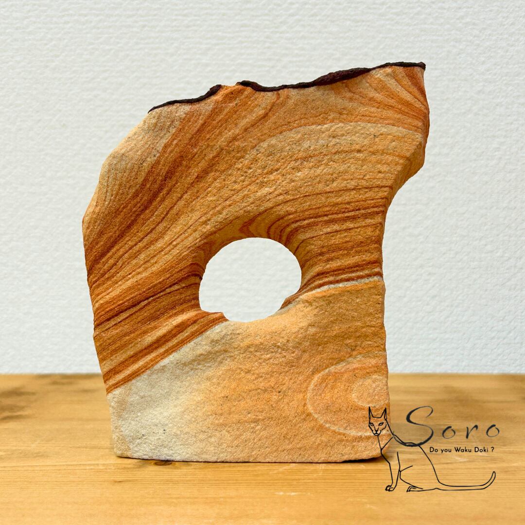 細かな砂の粒が長い年月をかけて固まってできた天然石で、層状の模様とあたたかみのあるブラウン〜オレンジカラーが特徴です。大地そのものを感じさせる、とてもナチュラルで落ち着いたエネルギーの石です。