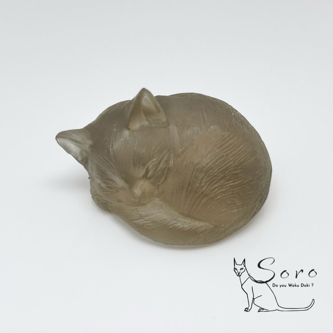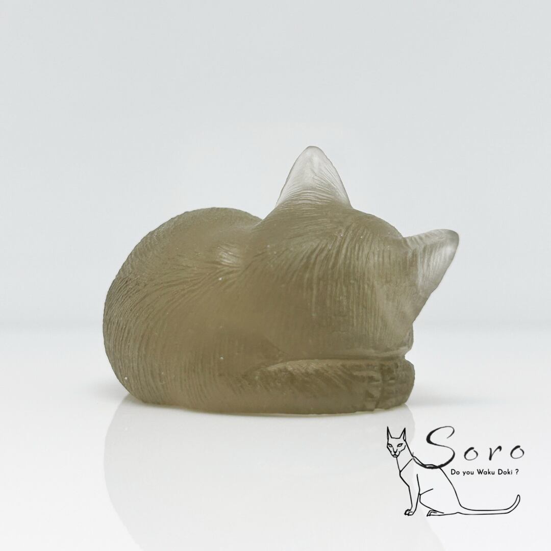 静かに寄り添い、そっと見守るスモーキークォーツの猫。