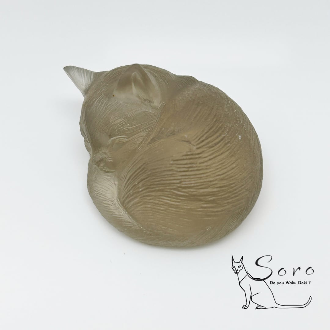 スモーキークォーツ/ 眠り猫 置物