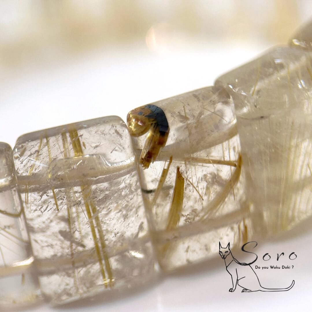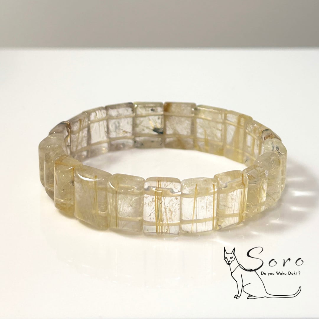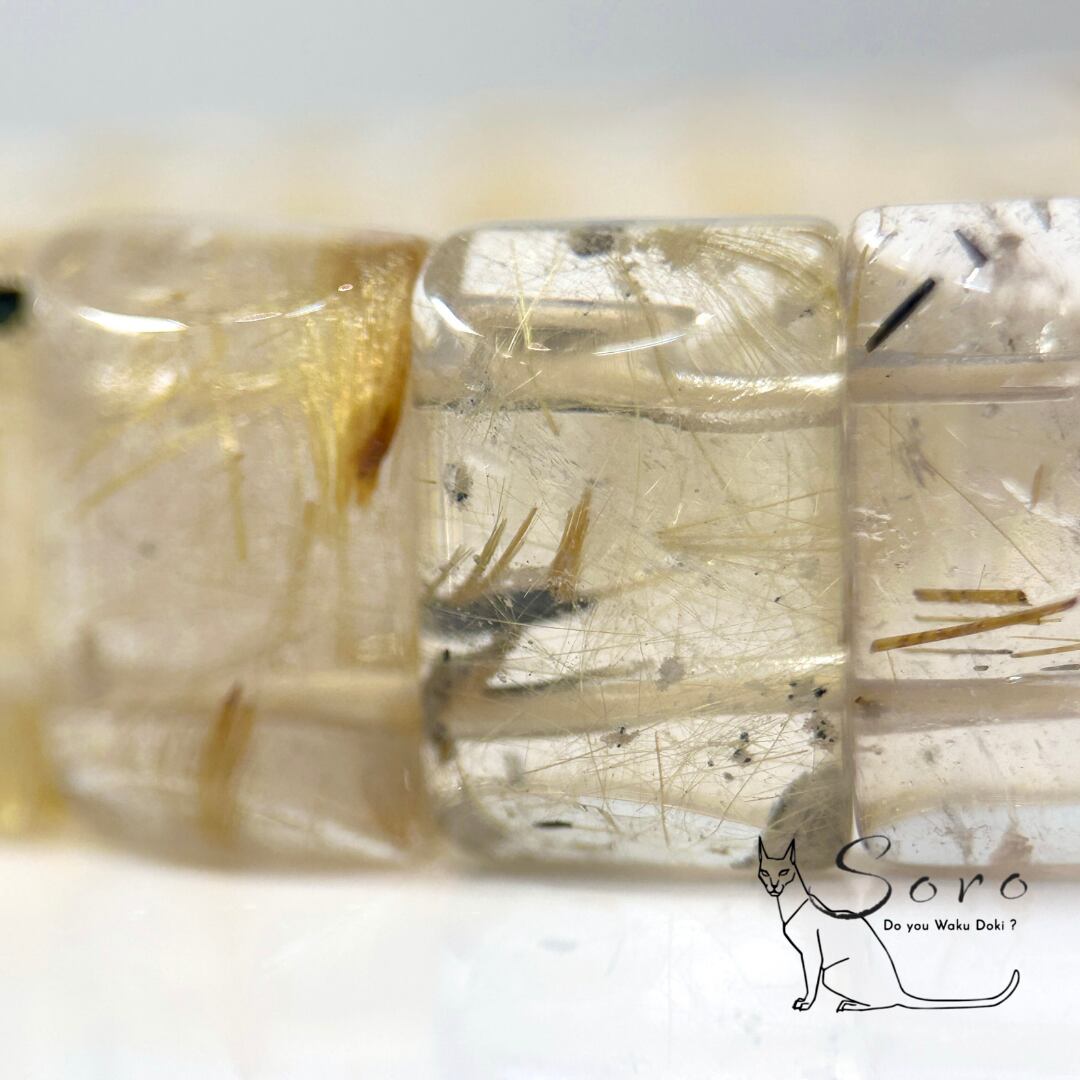 スクエアカットならではの直線的なフォルムが、ルチルの輝きをよりシャープに引き立て、手元に存在感と品格を添えます。