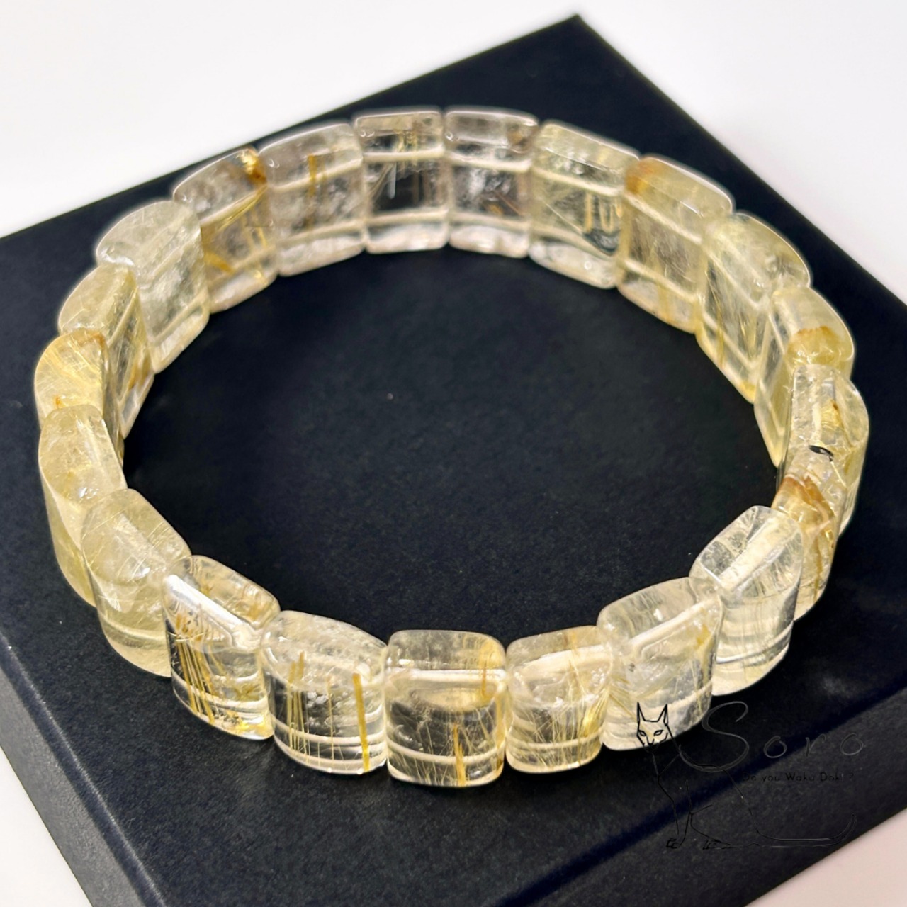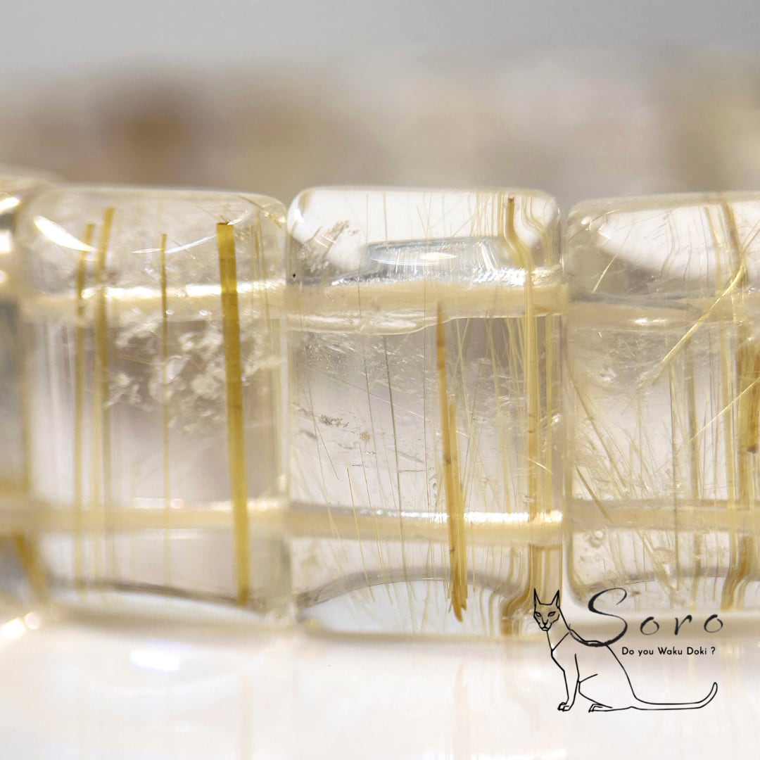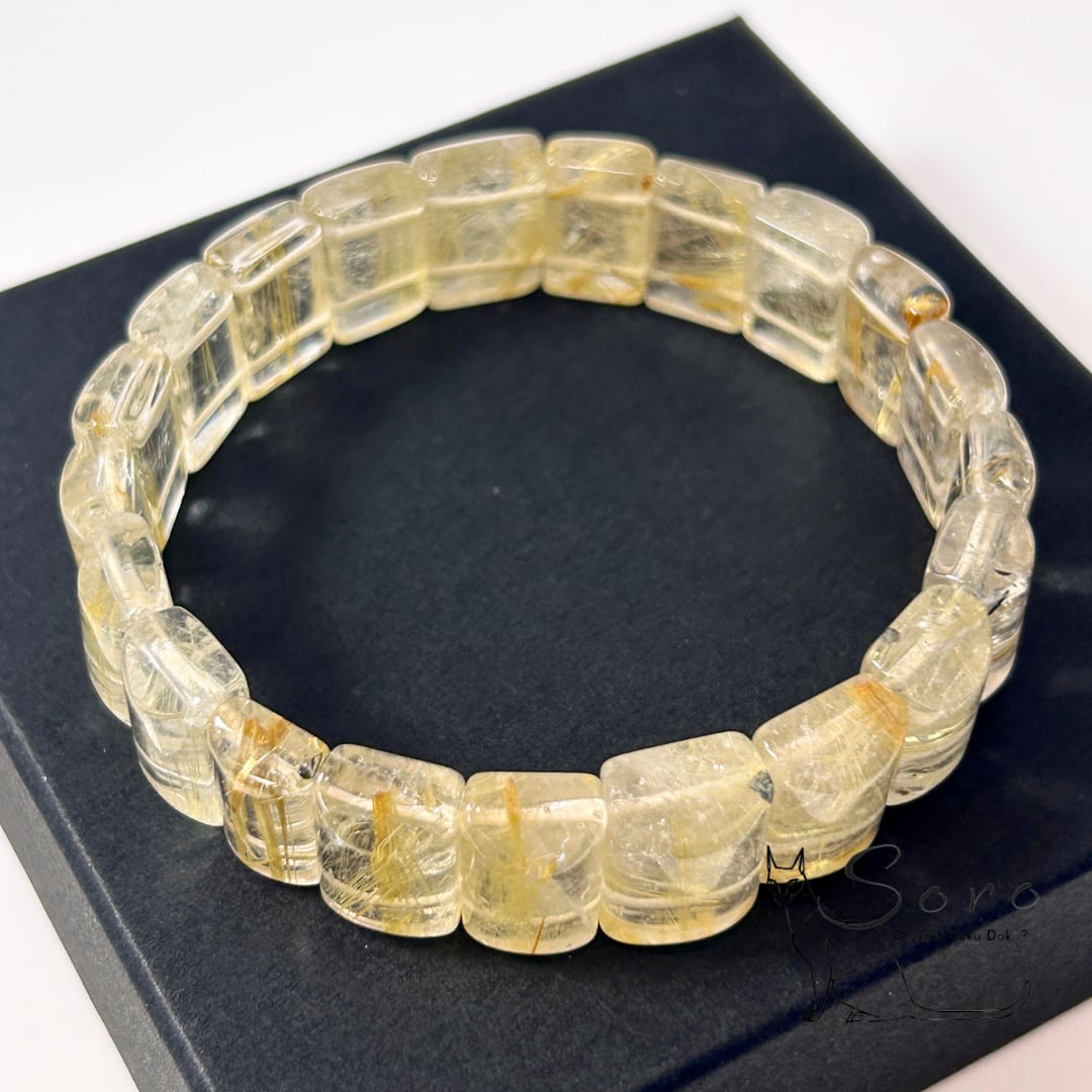 スクエアカットならではの直線的なフォルムが、ルチルの輝きをよりシャープに引き立て、手元に存在感と品格を添えます。