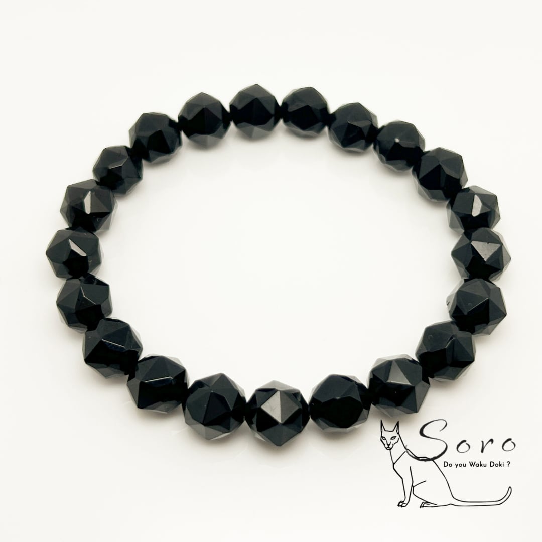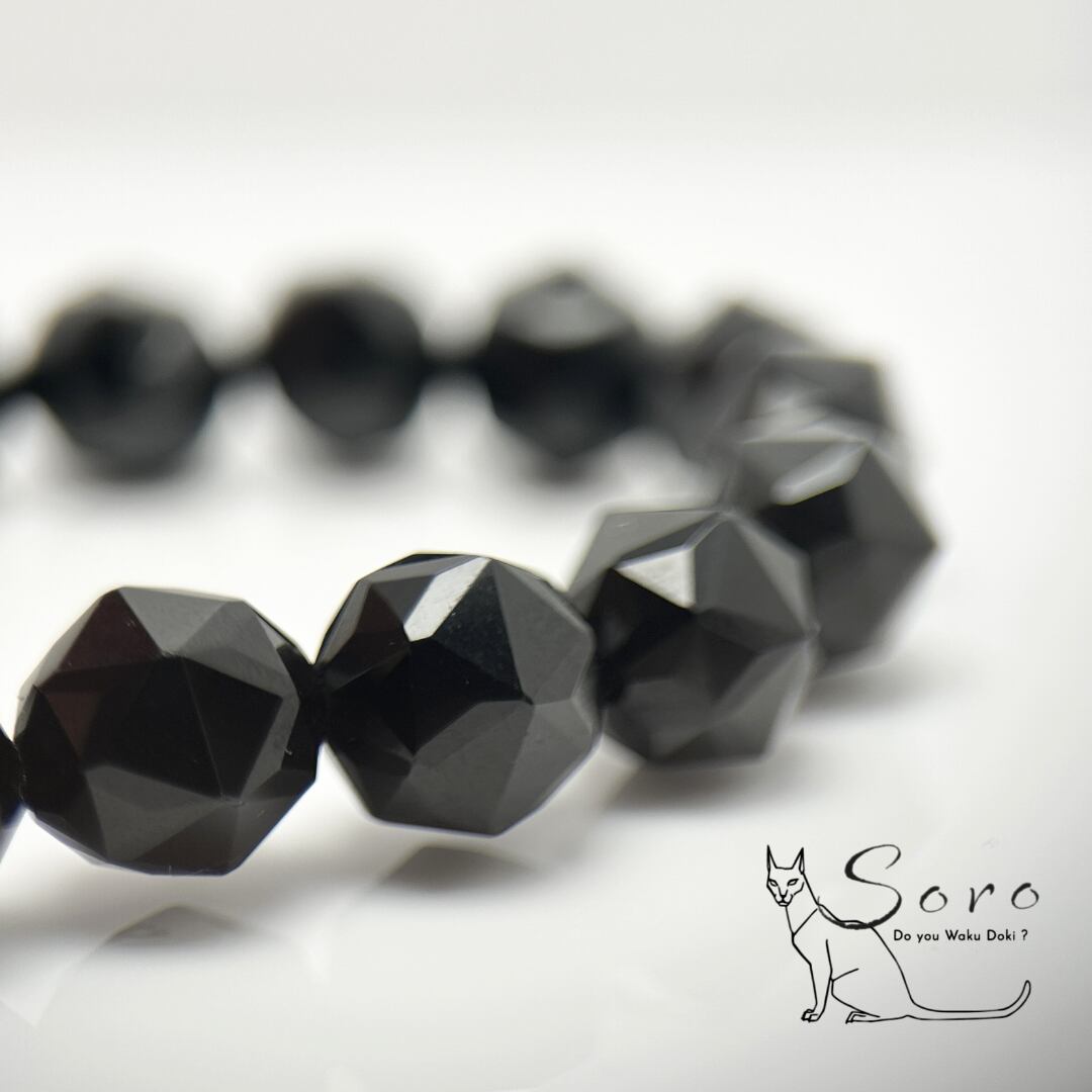 吸い込まれるような黒の奥行きと、カットによって生まれる神秘的なきらめきが、手元に静かで力強い存在感を与えます。