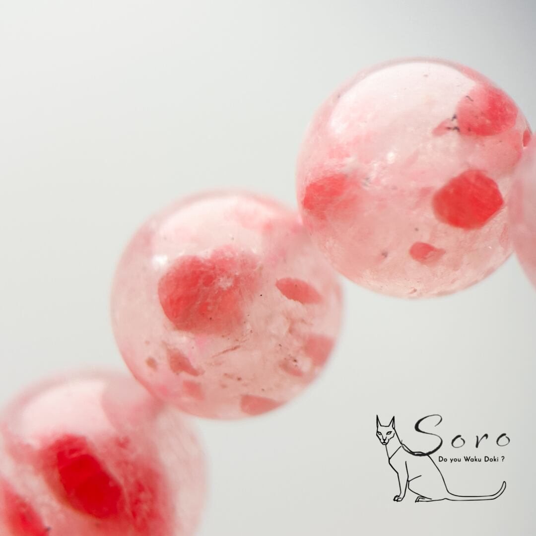 やわらかな赤やピンクのロードナイトが溶け込むように広がる特別な一本。