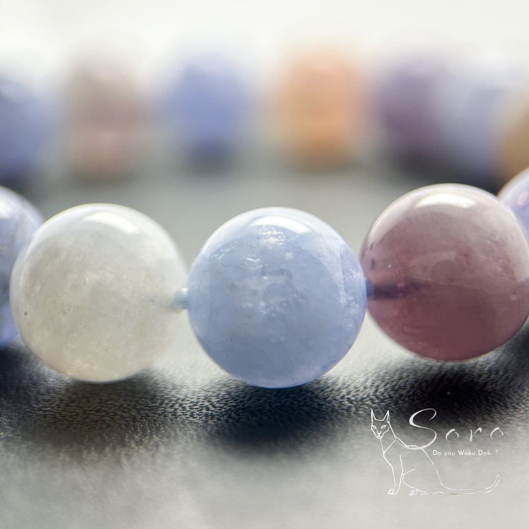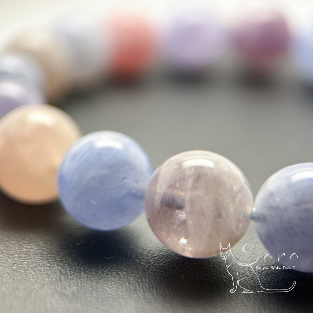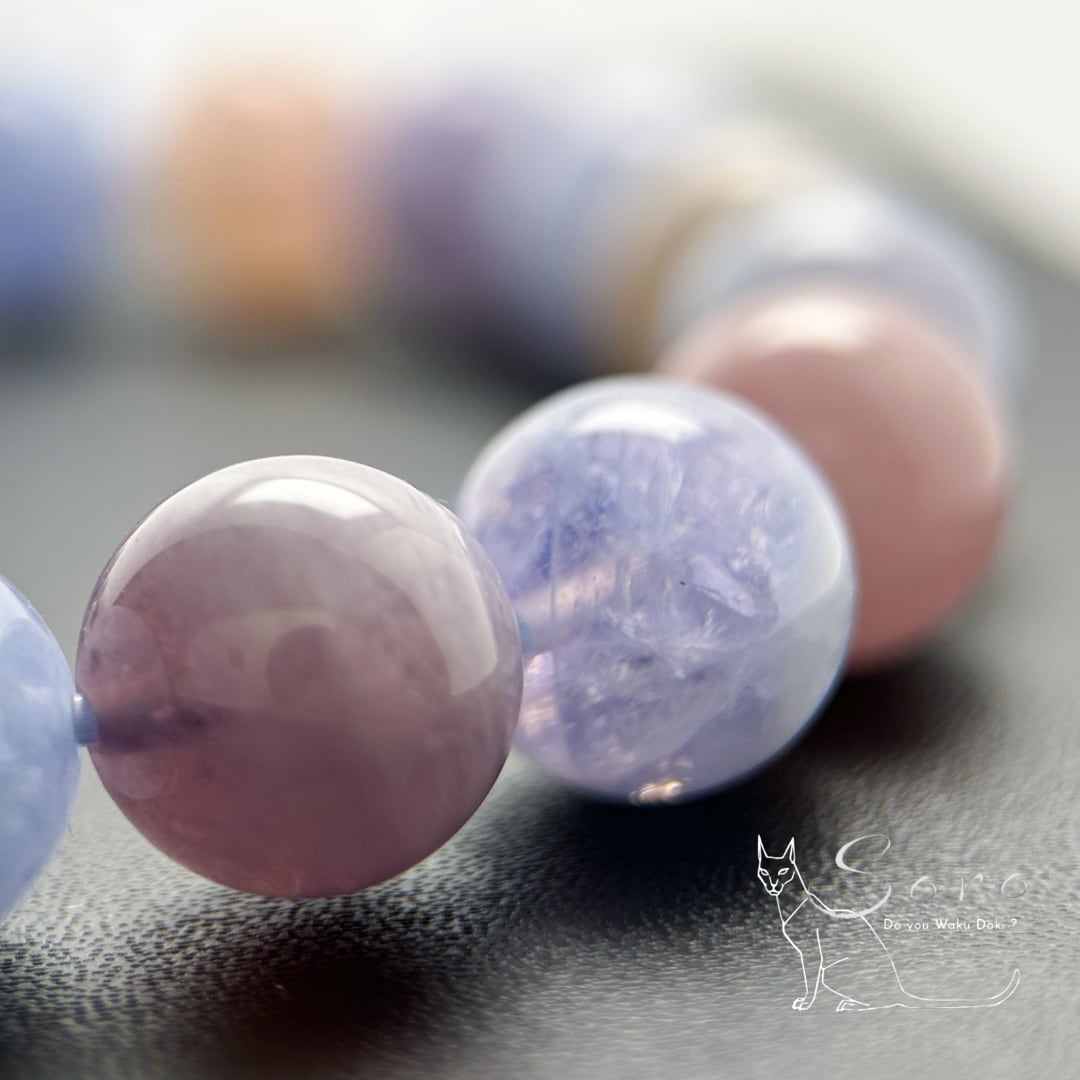 産出量が限られており、淡いブルーとローズのグラデーションが見られるものは特に希少とされています。