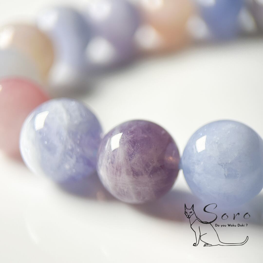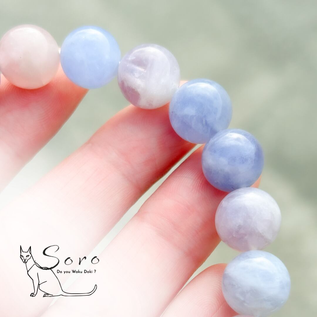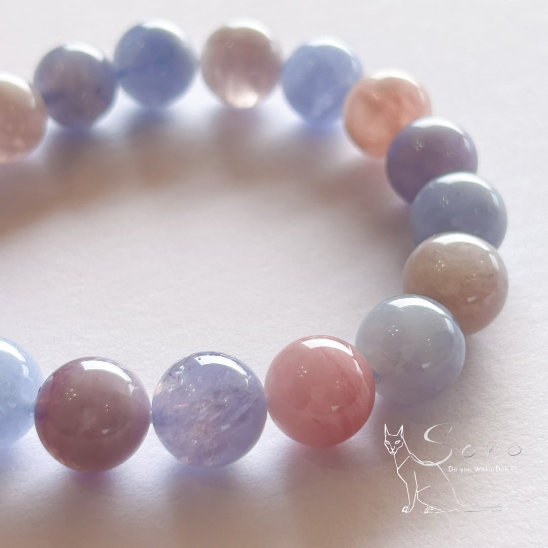 産出量が限られており、淡いブルーとローズのグラデーションが見られるものは特に希少とされています。