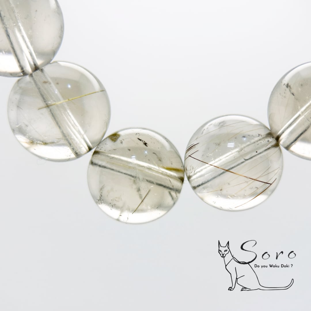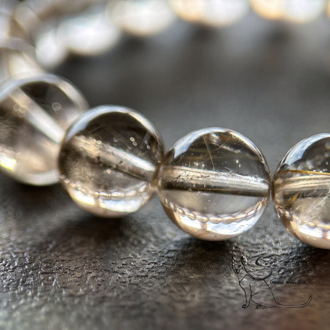 ほんのりスモーキーがかった落ち着いた色味に、内部には繊細なクラックやインクルージョンが広がり、光を受けるたびに表情が変わります。