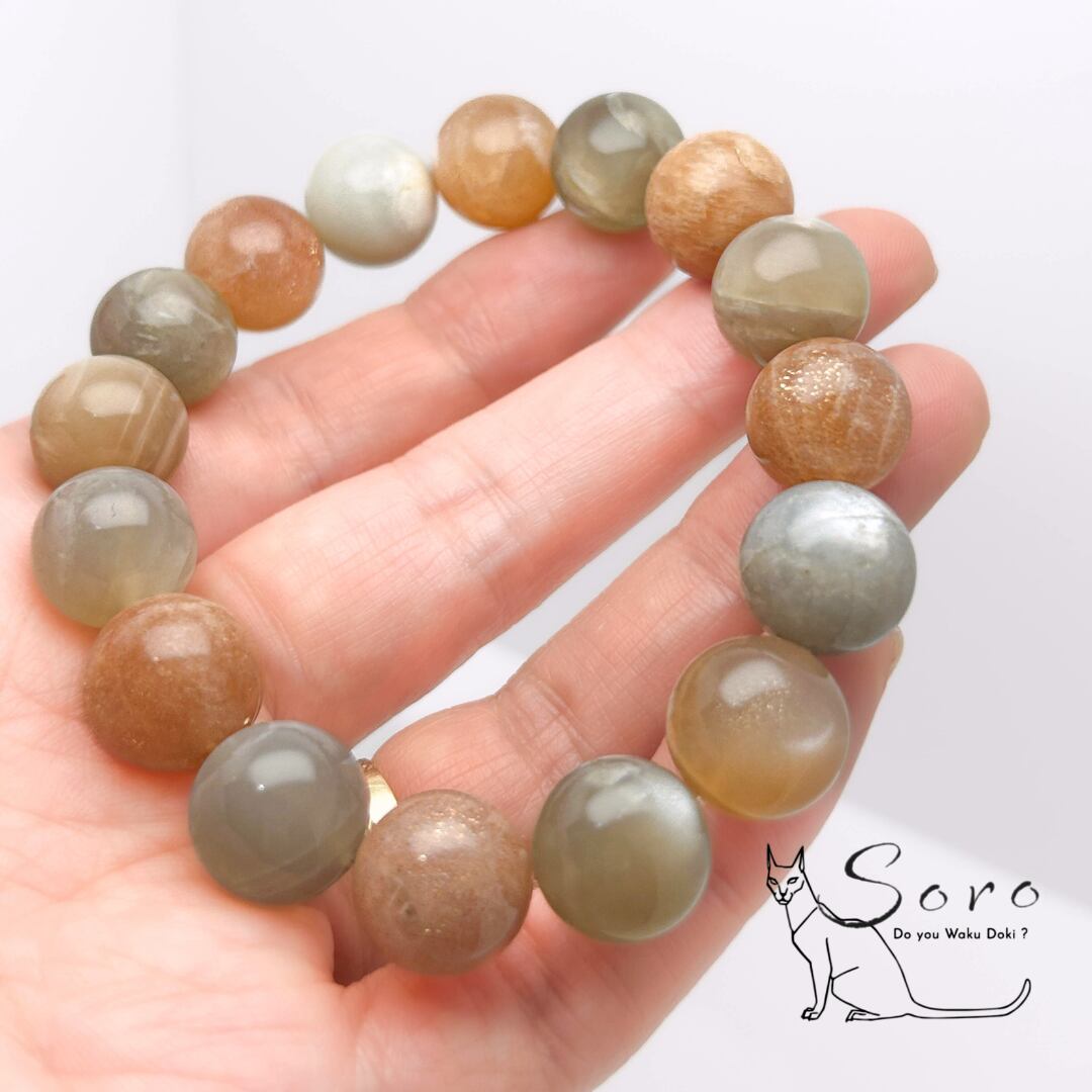 【なめらかな輝き】MIXムーンストーン 13mm ブレスレット【BR835】YU