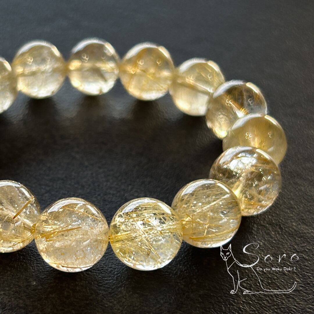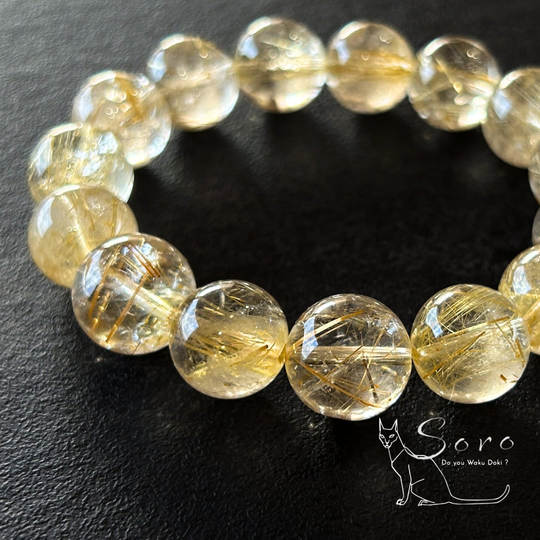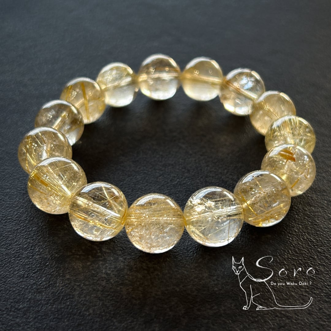 【富と幸福】ゴールドルチル ブレスレット 14mm 高品質4A 【BR837】YU