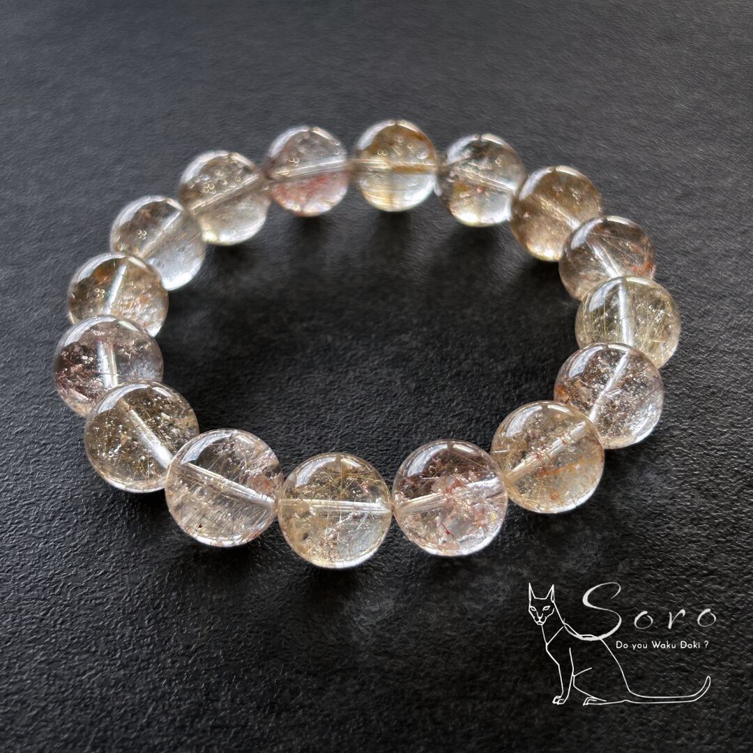 【幸運の虹入り】ライモナイト入りルチル ブレスレット13mmブラジル産【BR839】YU