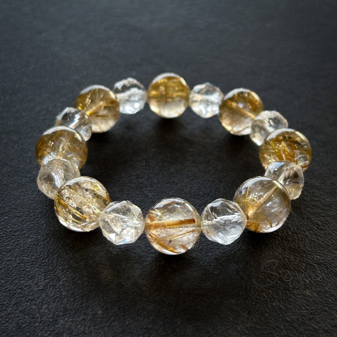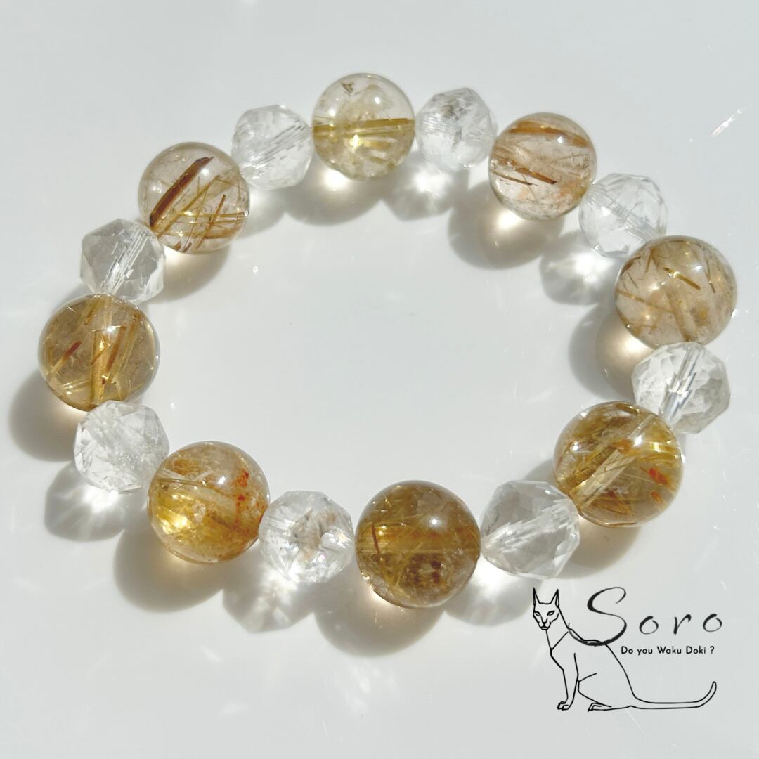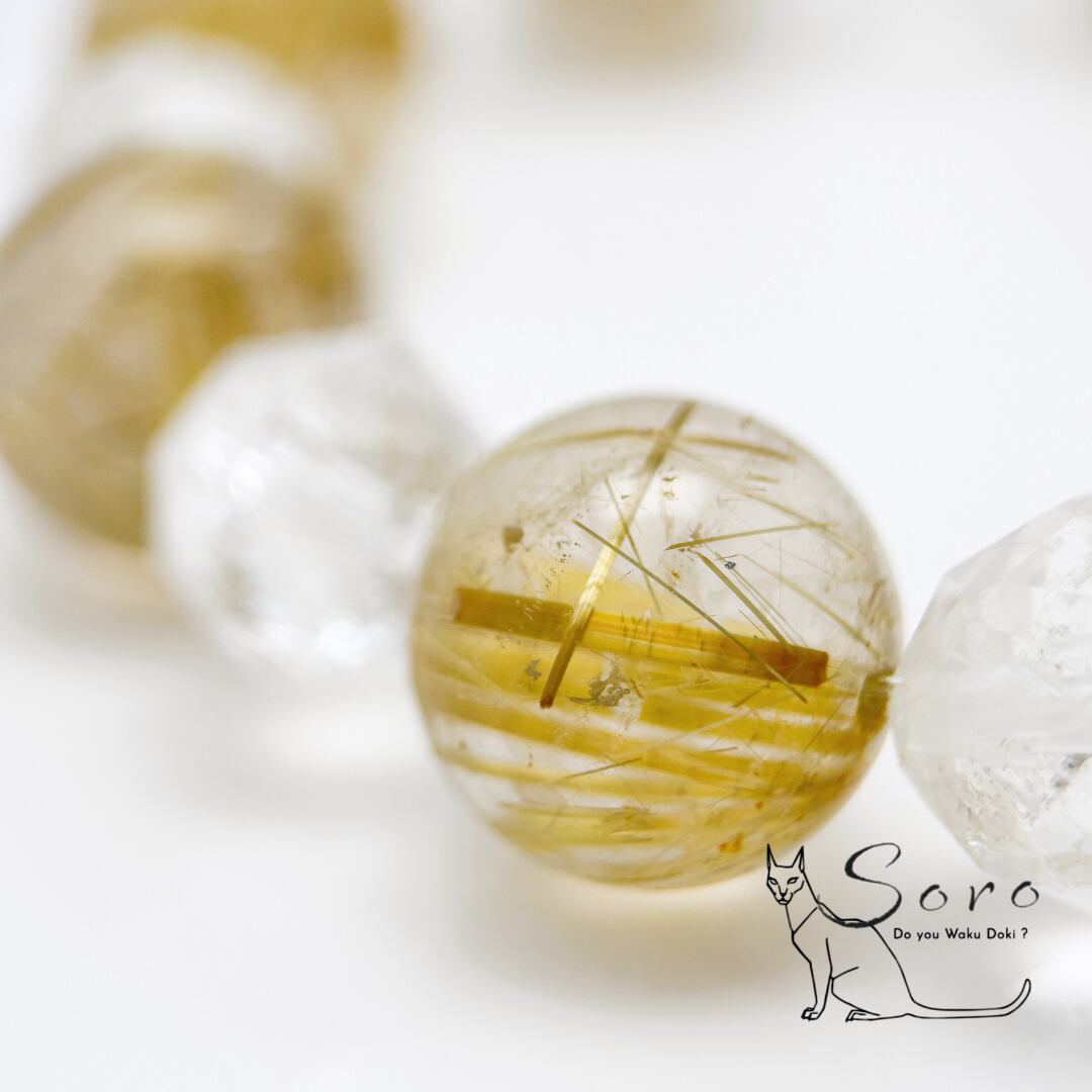黄金の針が力強く輝くタイチンルチルクォーツに、清らかな水晶を組み合わせたブレスレット。