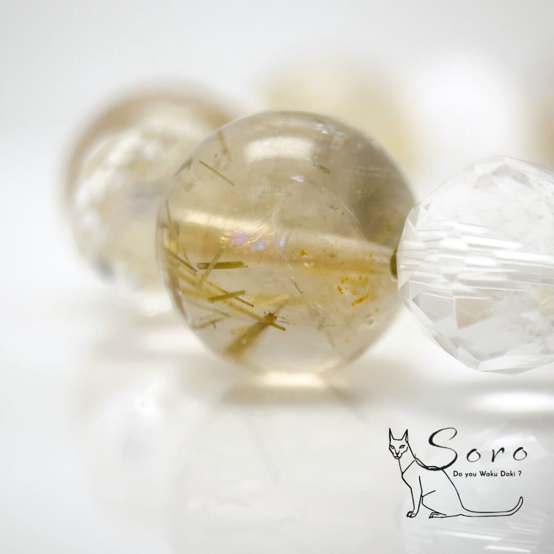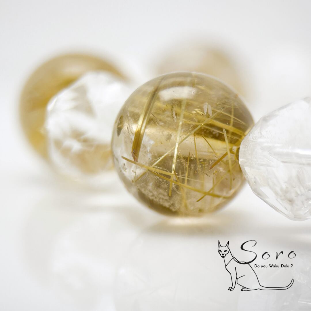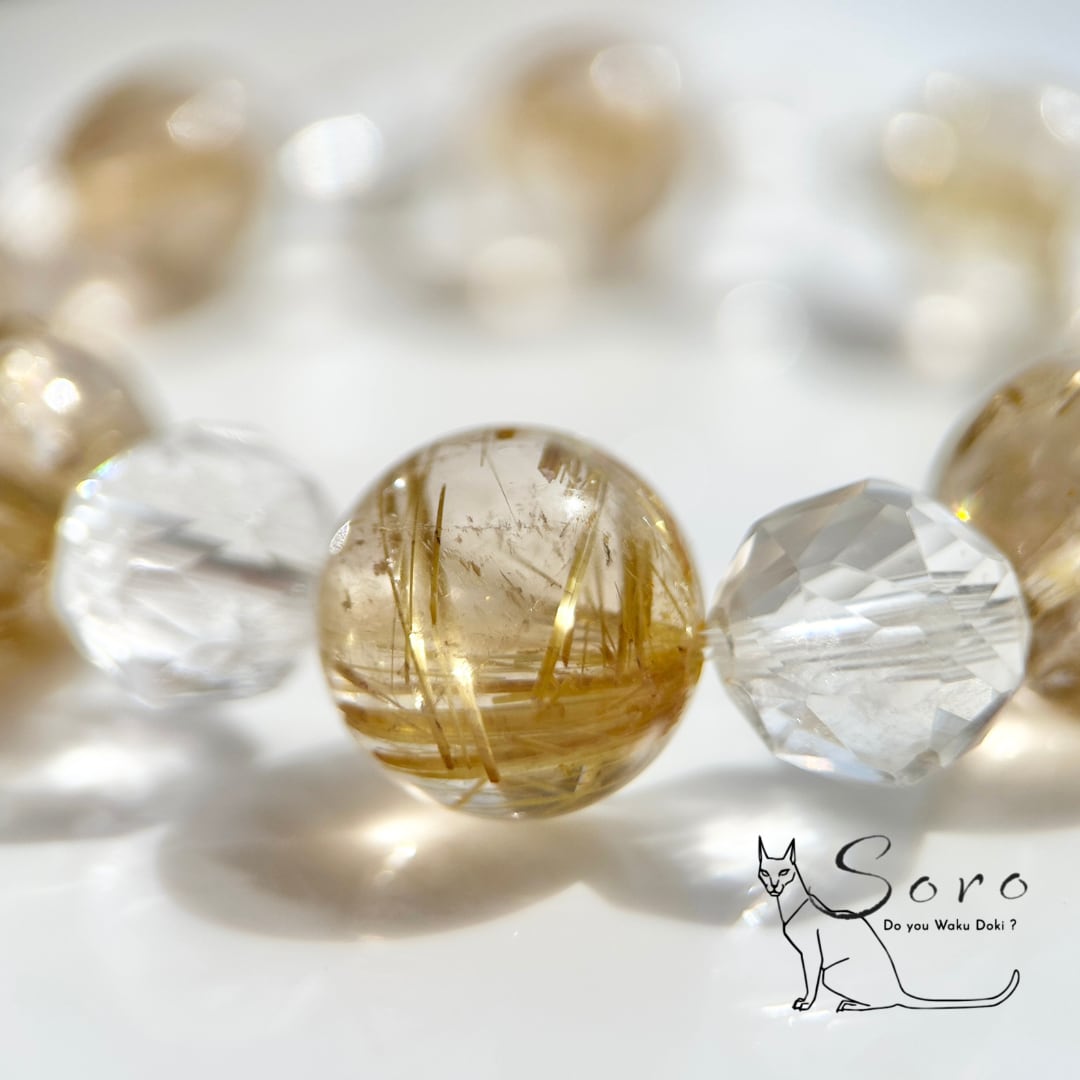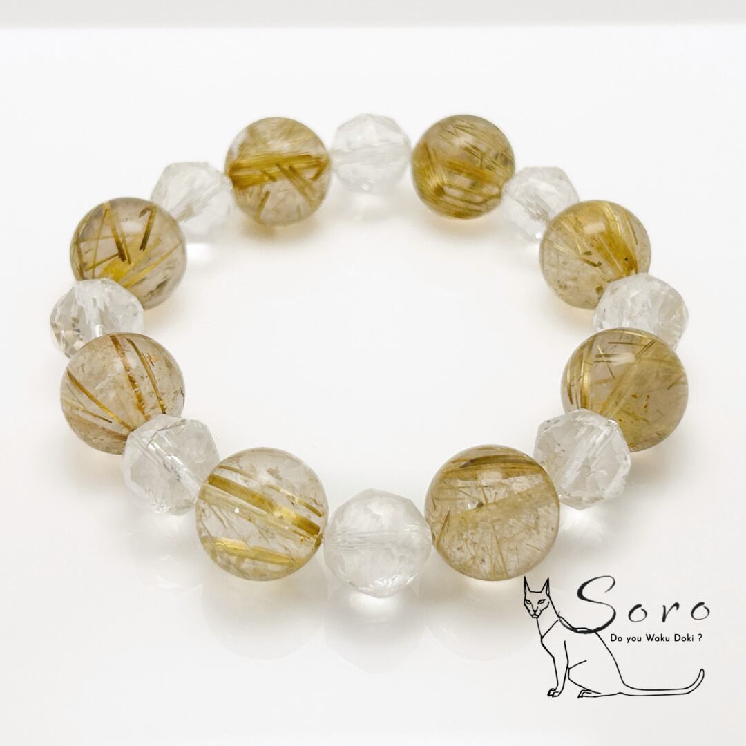 黄金の針が力強く輝くタイチンルチルクォーツに、清らかな水晶を組み合わせたブレスレット。