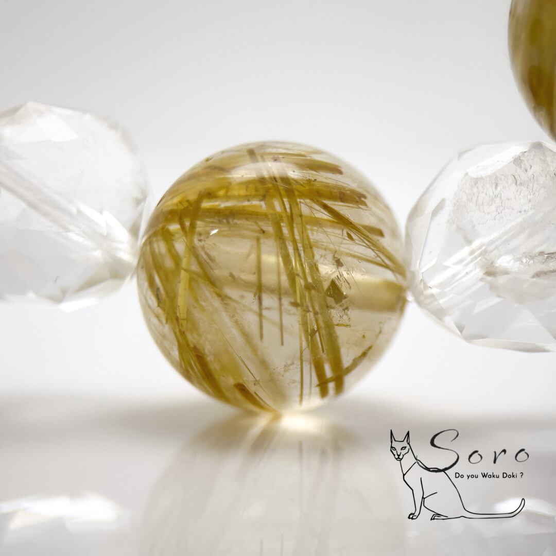 金運と繁栄の大玉タイチンルチル×キラキラ水晶ブレスレット【BR838B】