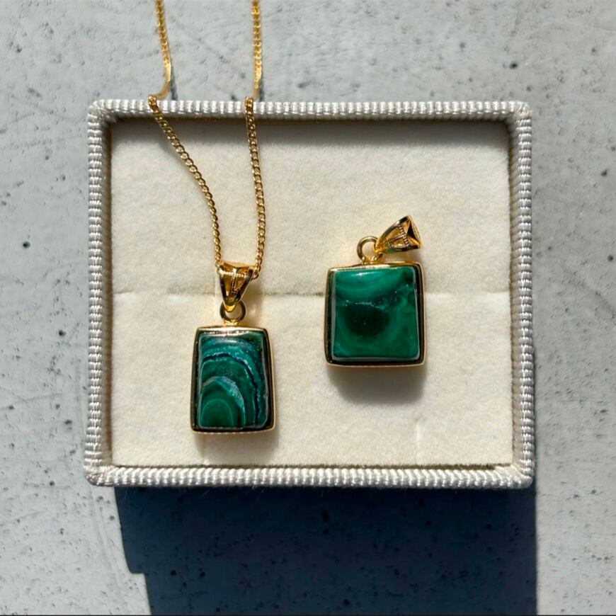 【心を落ち着かせる】マラカイト(左) ペンダントトップ【P117】